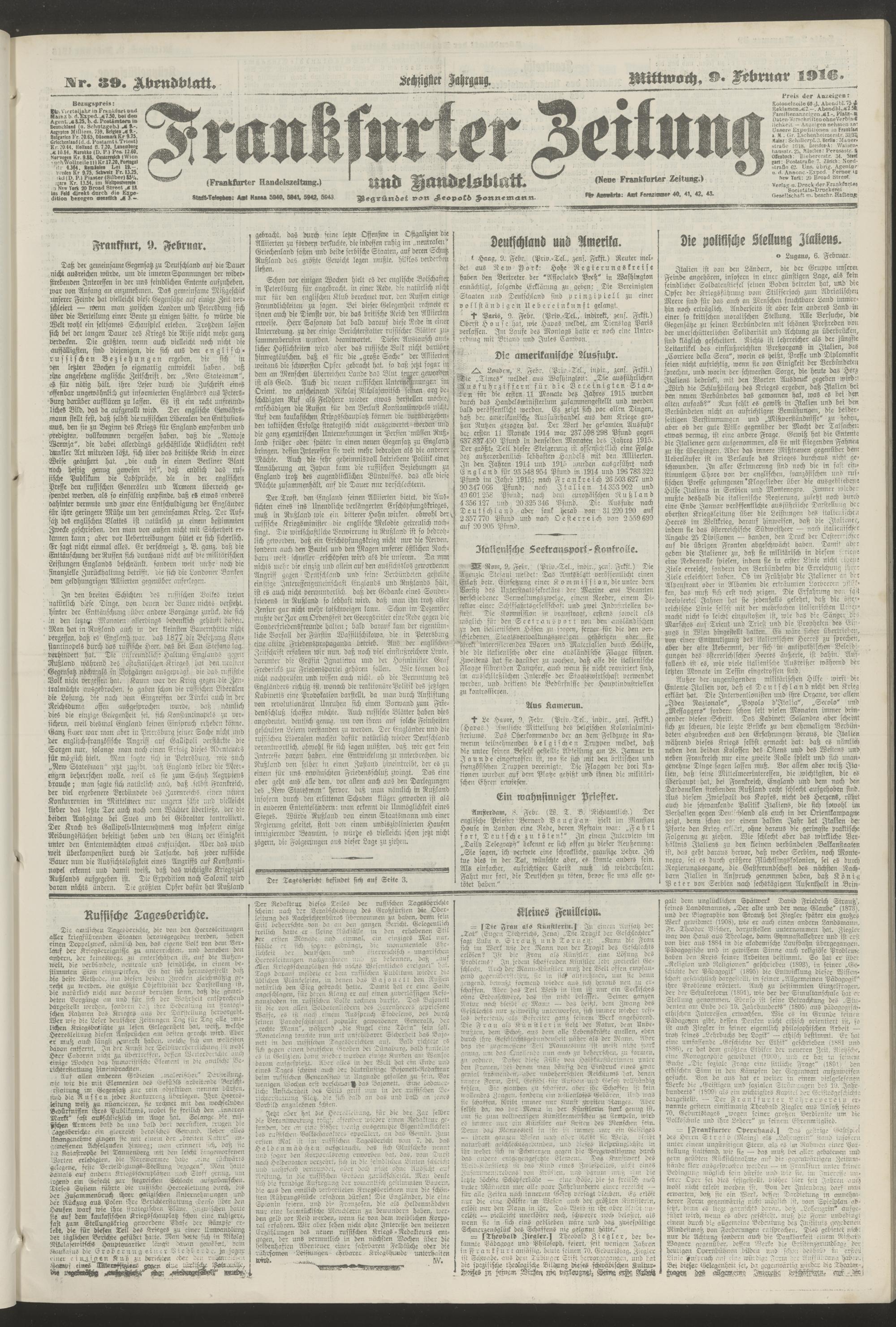 09.02.1916 = Nr. 39. Abendblatt