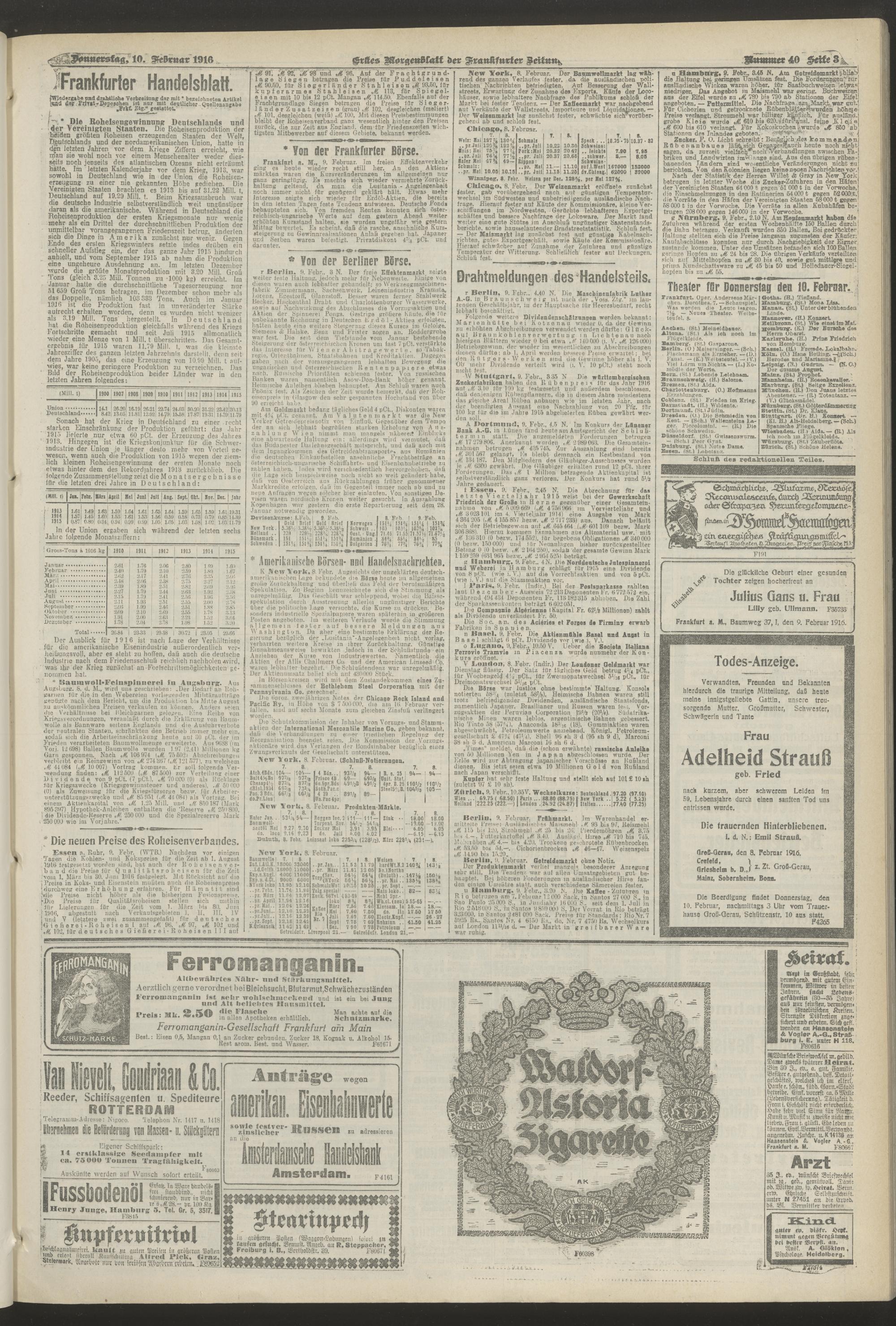 10.02.1916 = Nr. 40. Erstes Morgenblatt