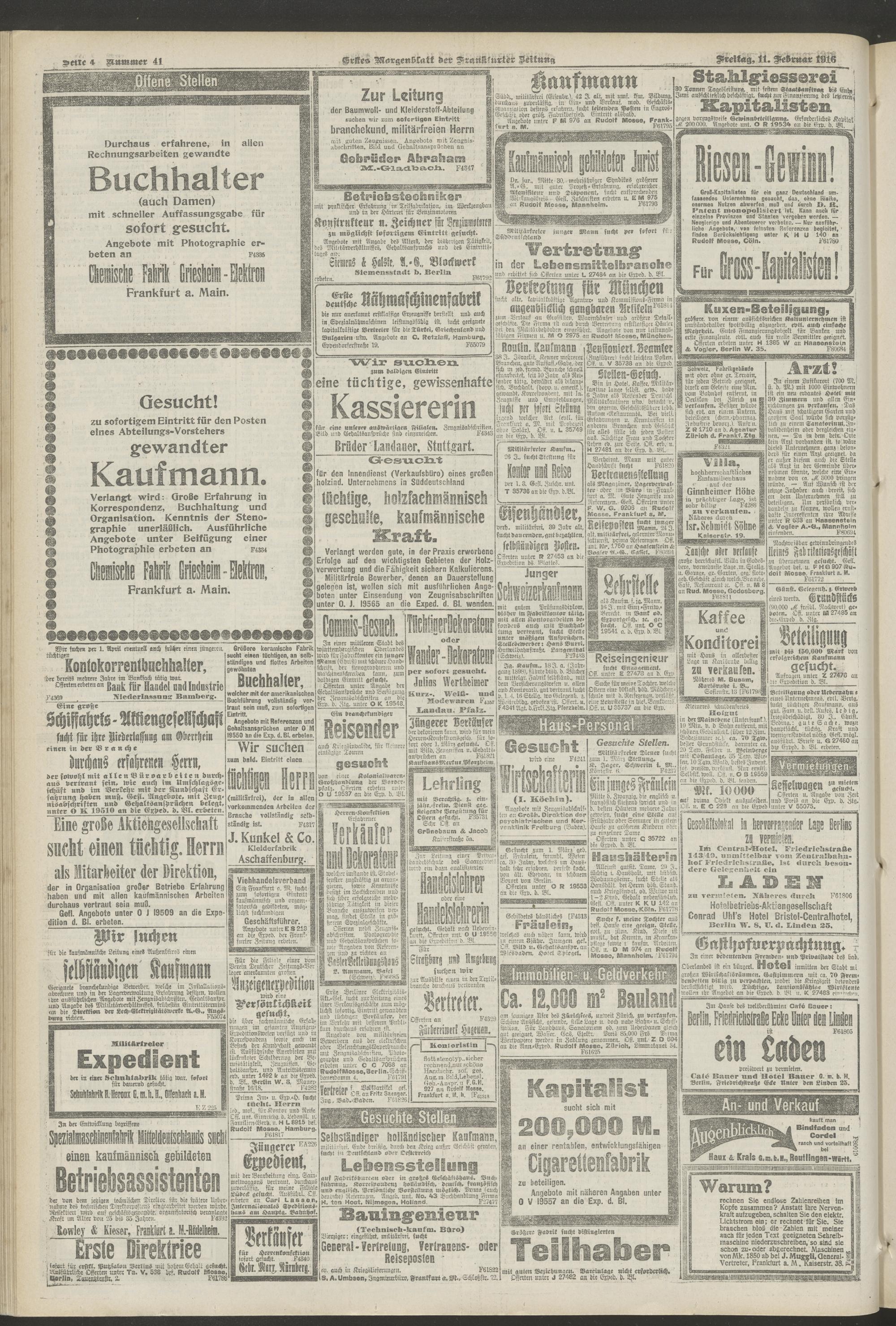 11.02.1916 = Nr. 41. Erstes Morgenblatt