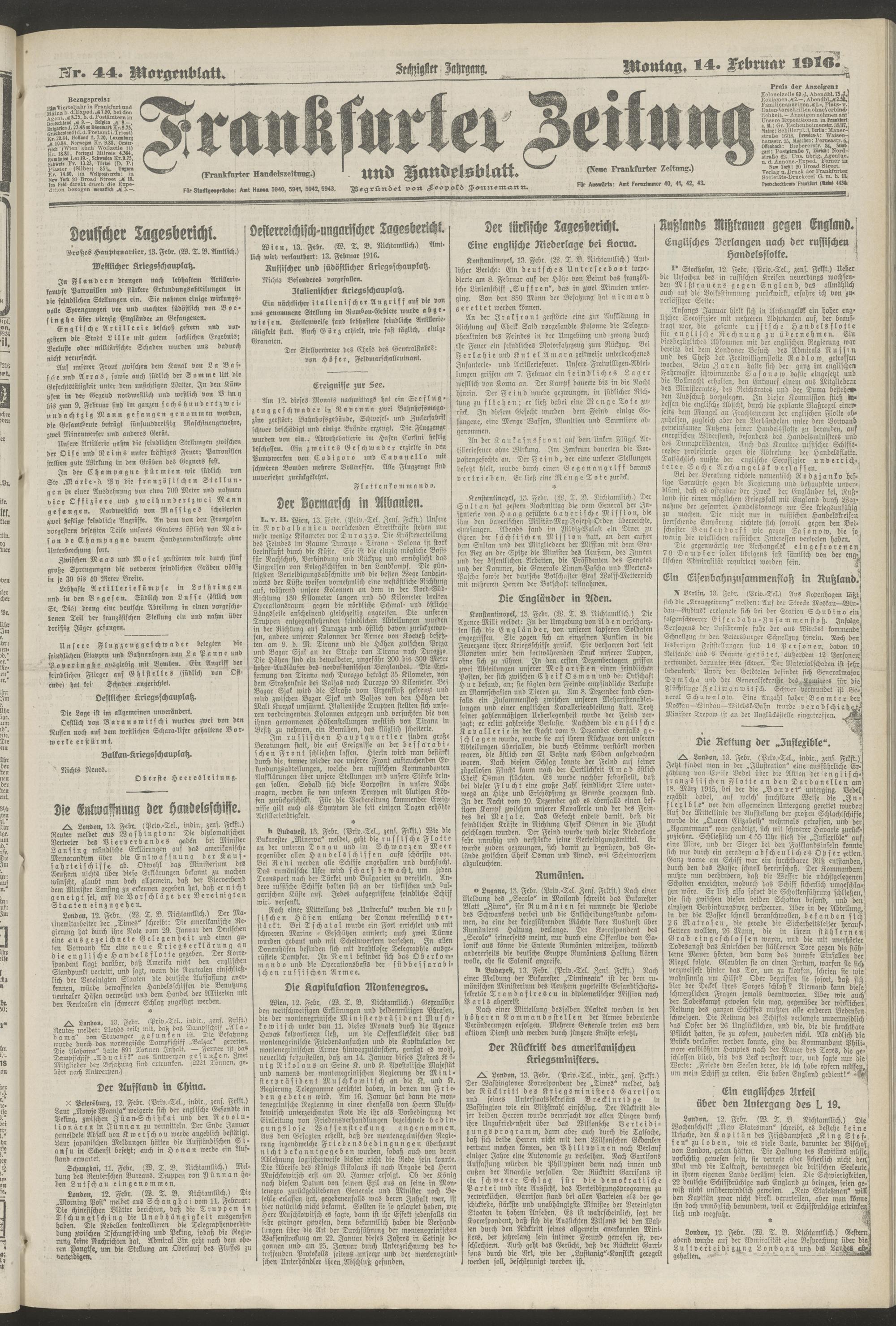 14.02.1916 = Nr. 44. Morgenblatt
