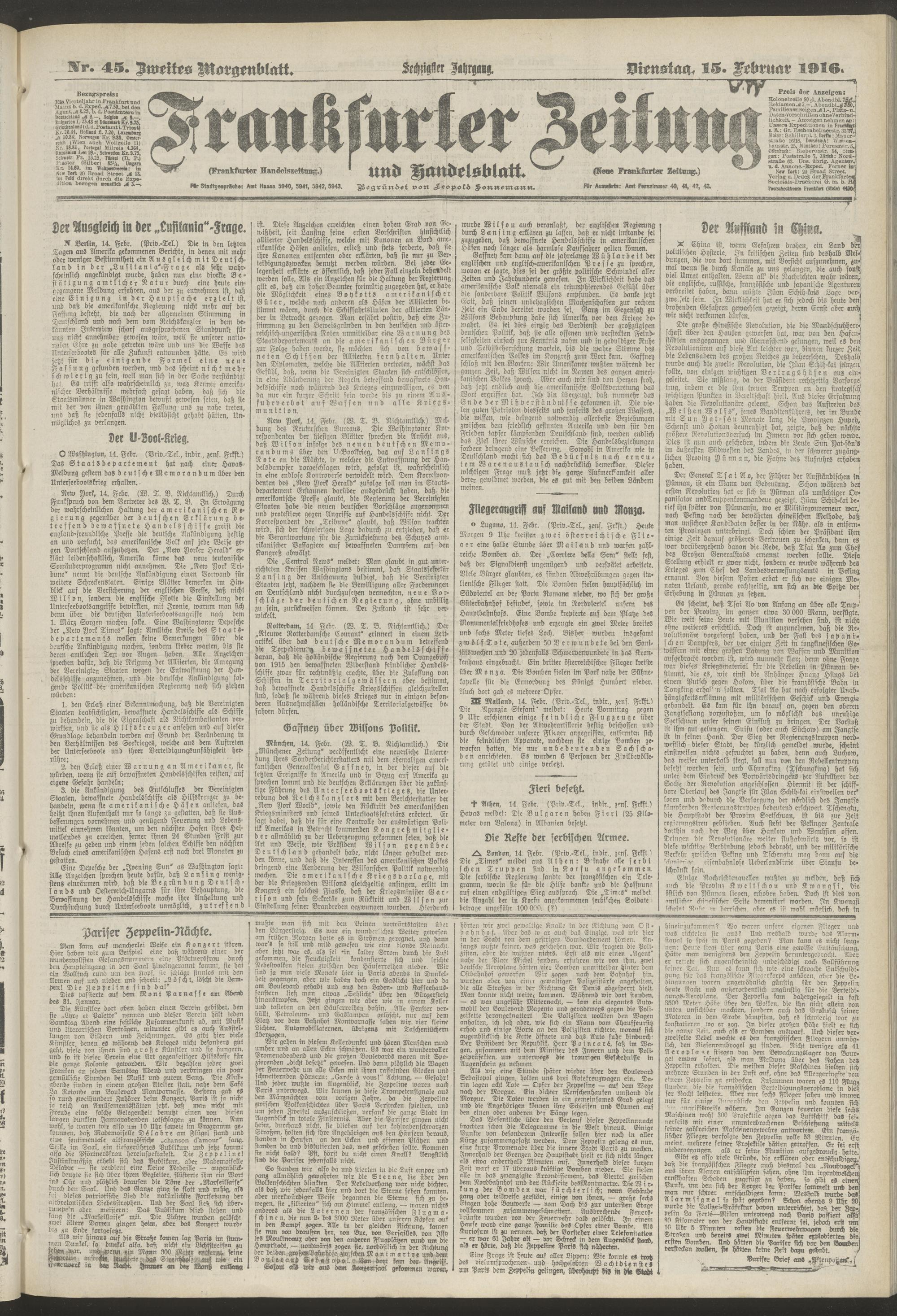 15.02.1916 = Nr. 45. Zweites Morgenblatt