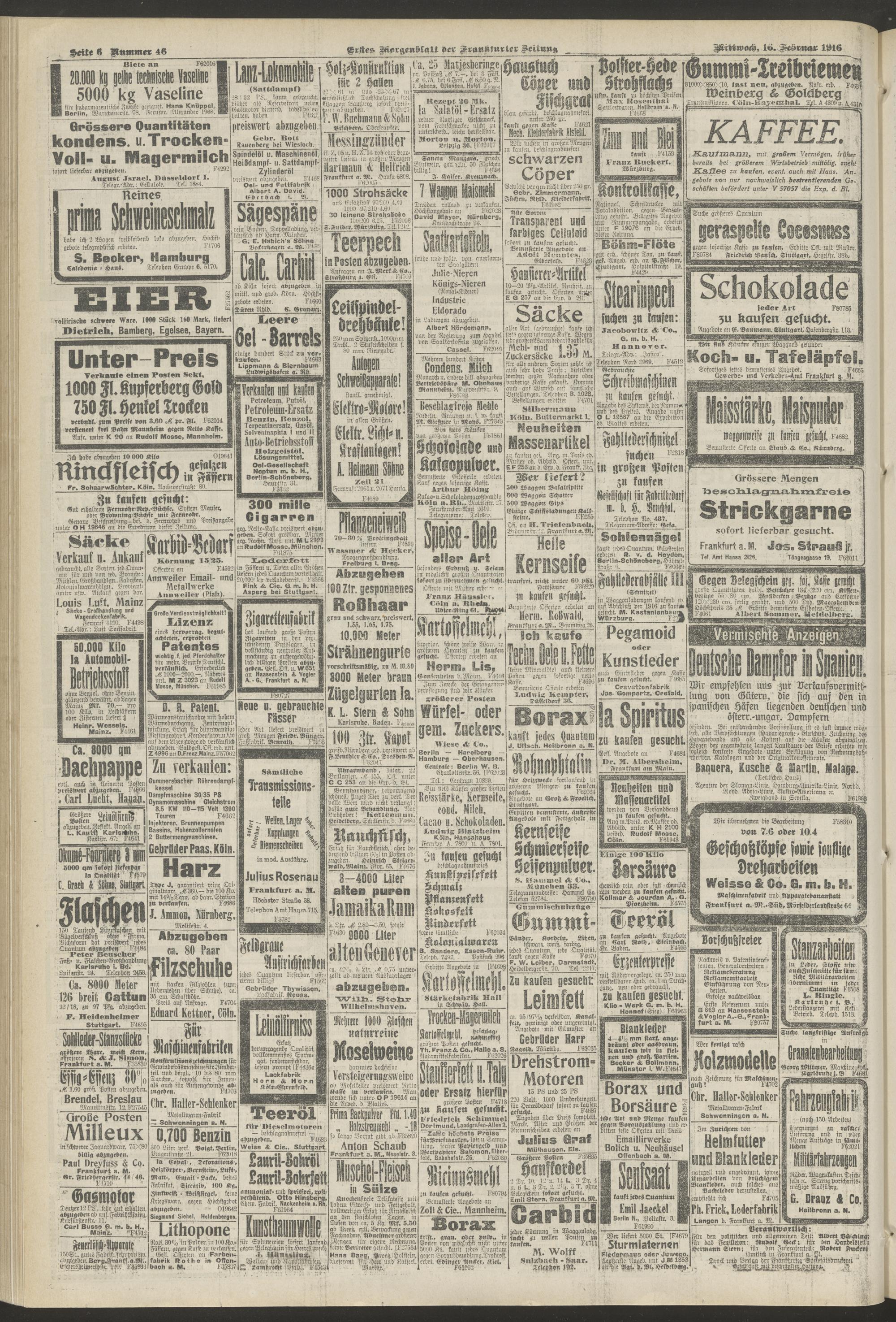 16.02.1916 = Nr. 46. Erstes Morgenblatt
