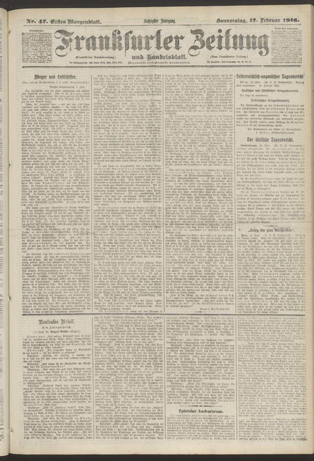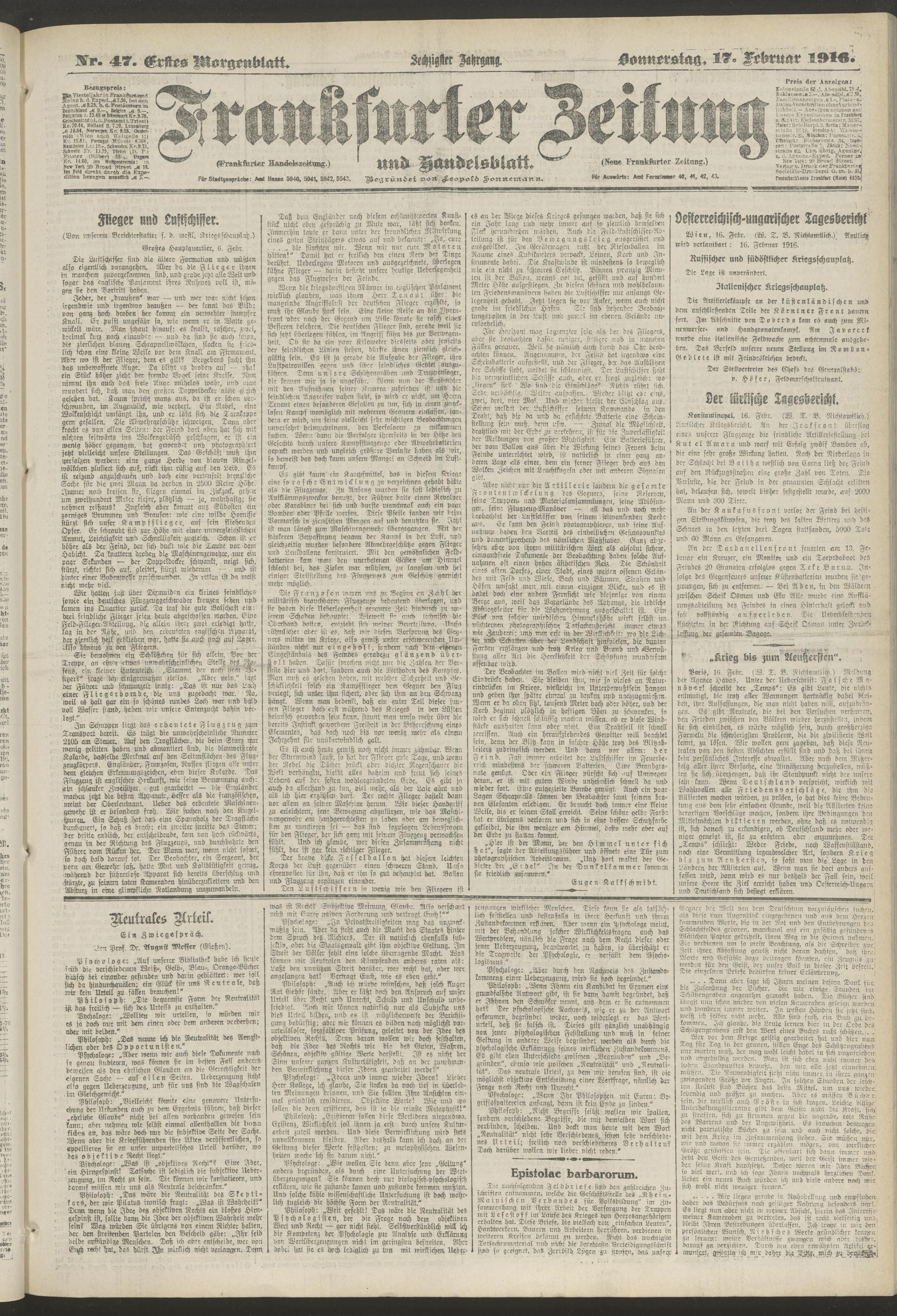 17.02.1916 = Nr. 47. Erstes Morgenblatt