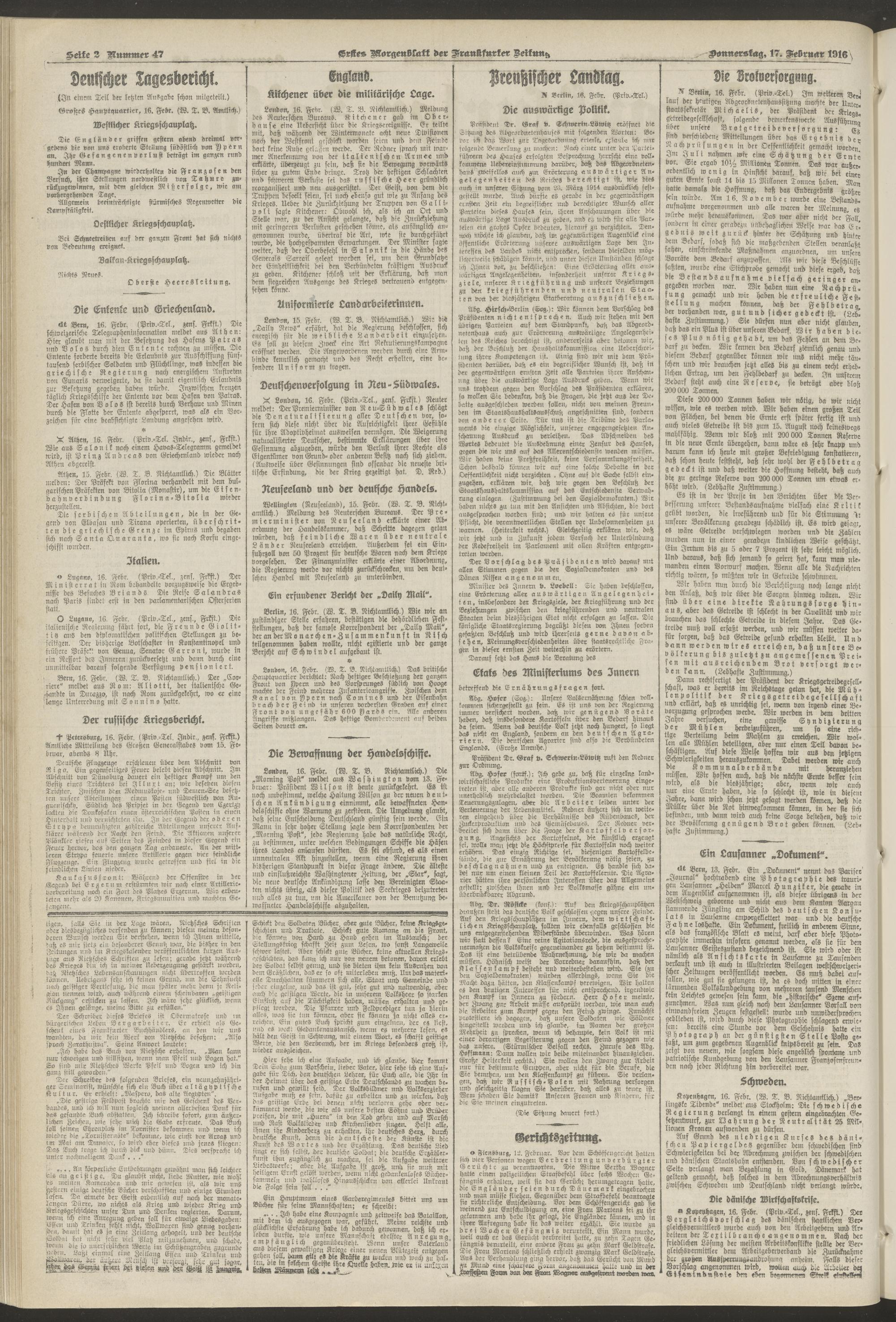 17.02.1916 = Nr. 47. Erstes Morgenblatt