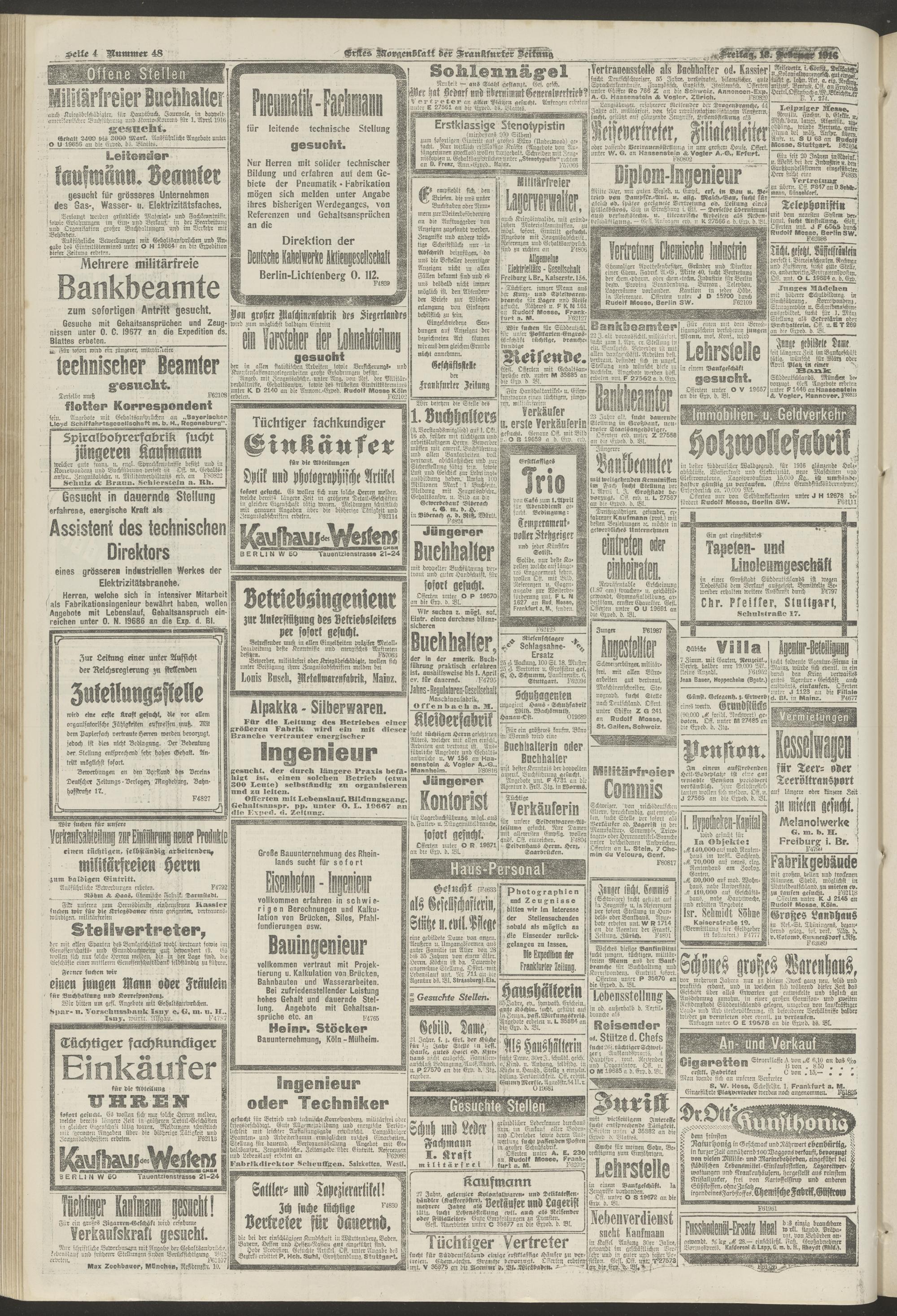 18.02.1916 = Nr. 48. Erstes Morgenblatt