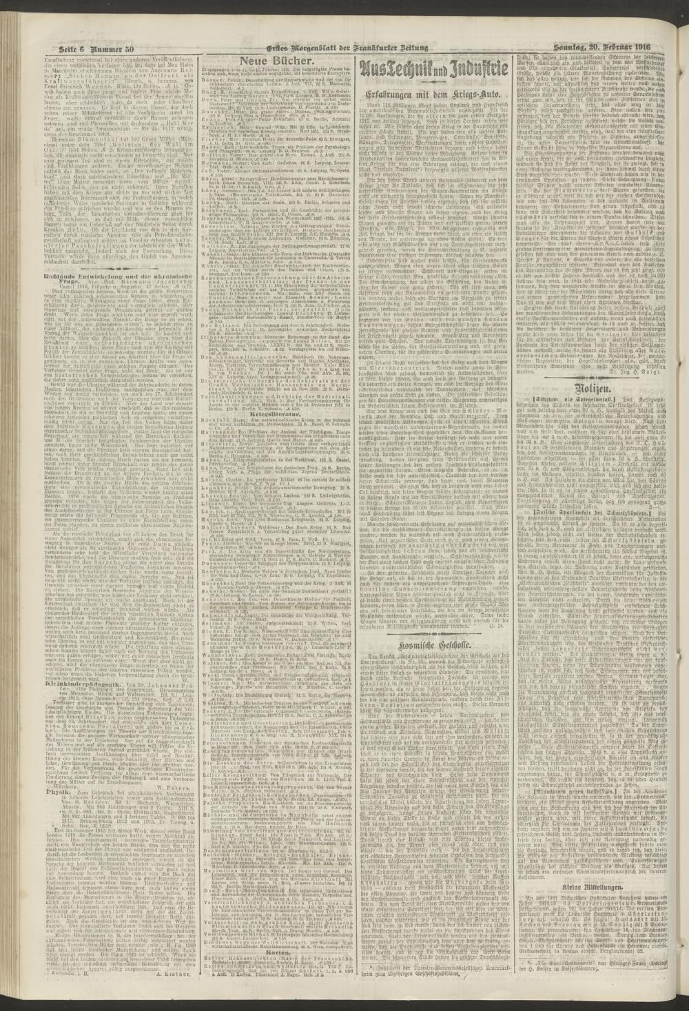 20.02.1916 = Nr. 50. Erstes Morgenblatt