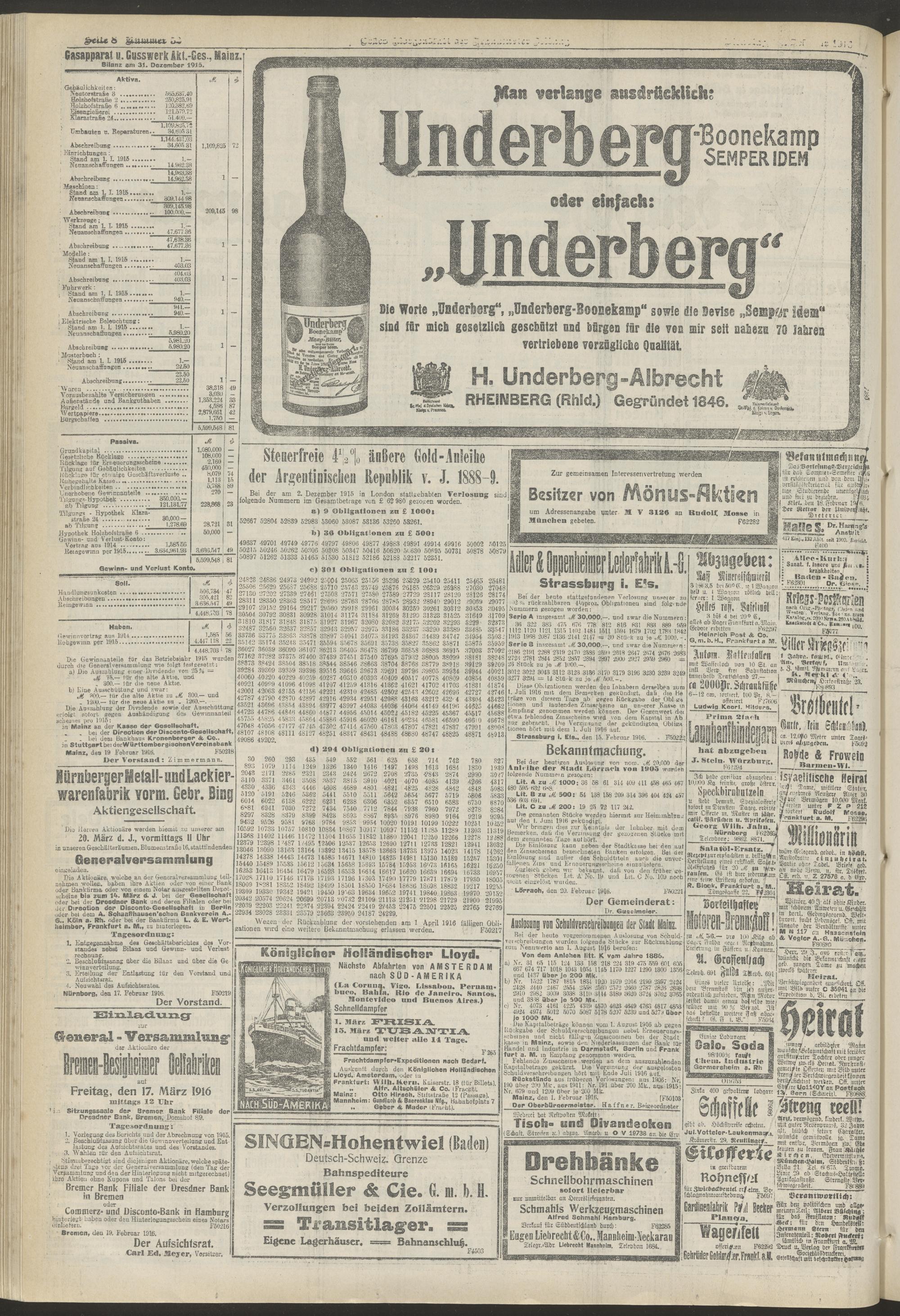 22.02.1916 = Nr. 52. Erstes Morgenblatt