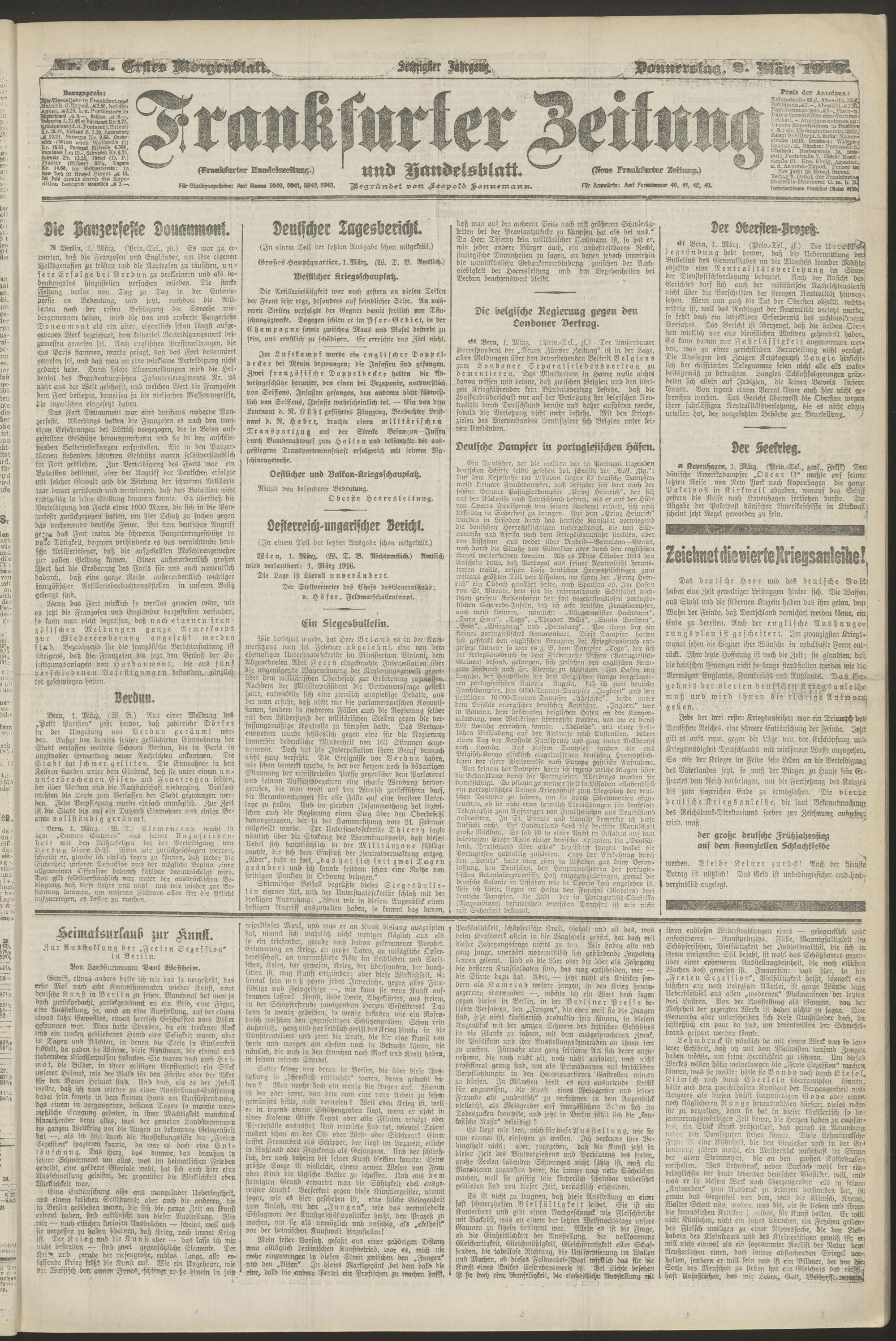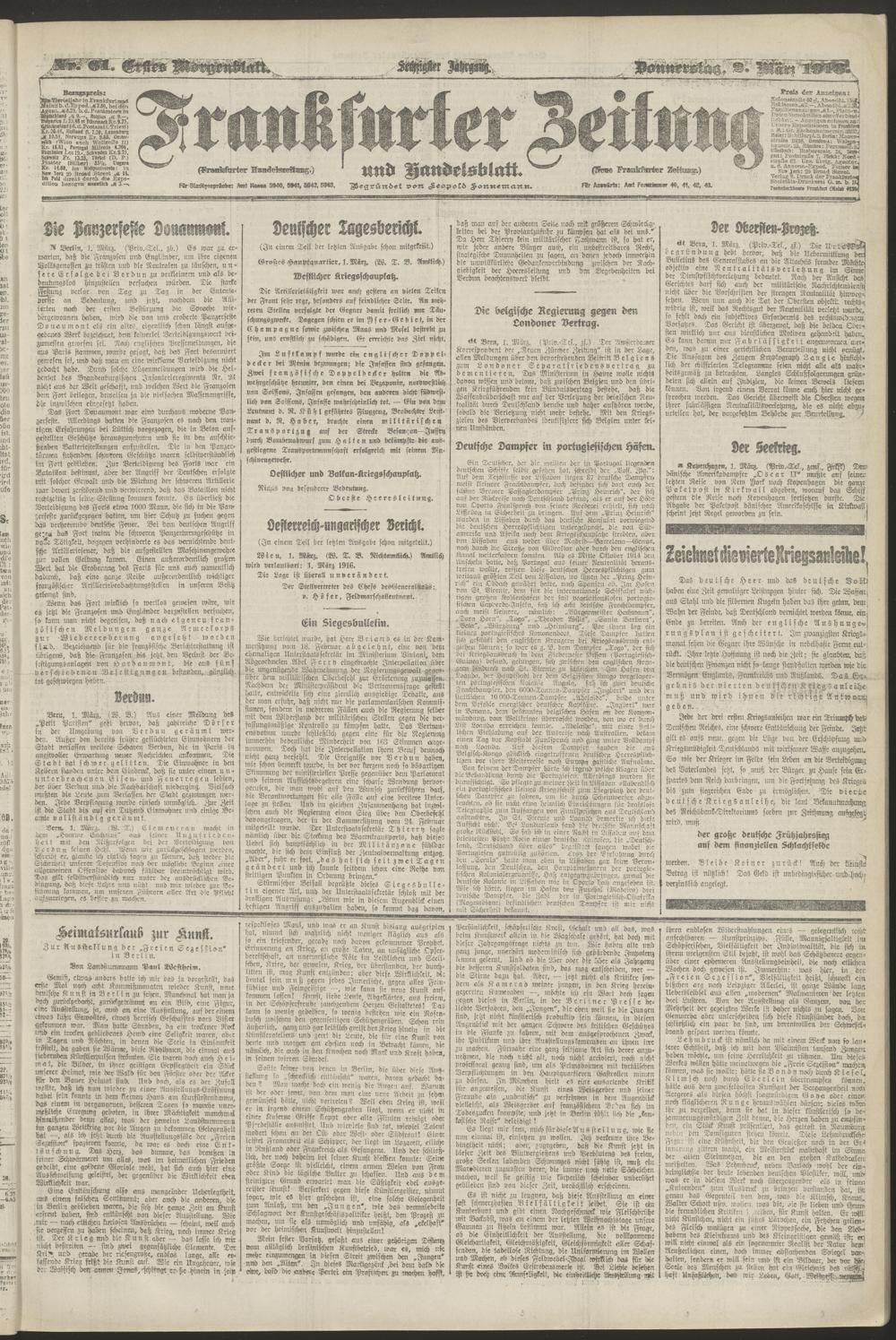 02.03.1916 = Nr. 61. Erstes Morgenblatt