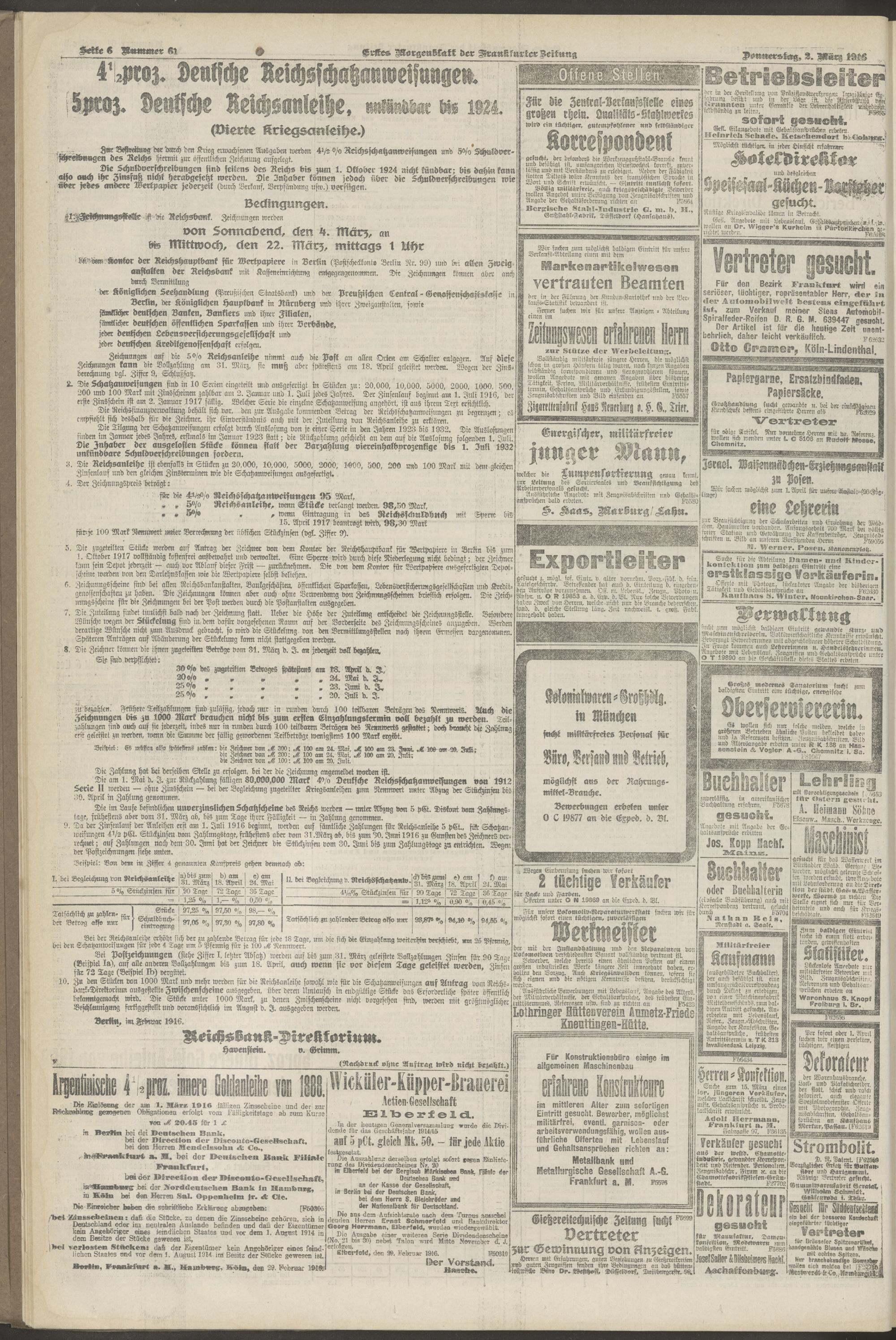 02.03.1916 = Nr. 61. Erstes Morgenblatt