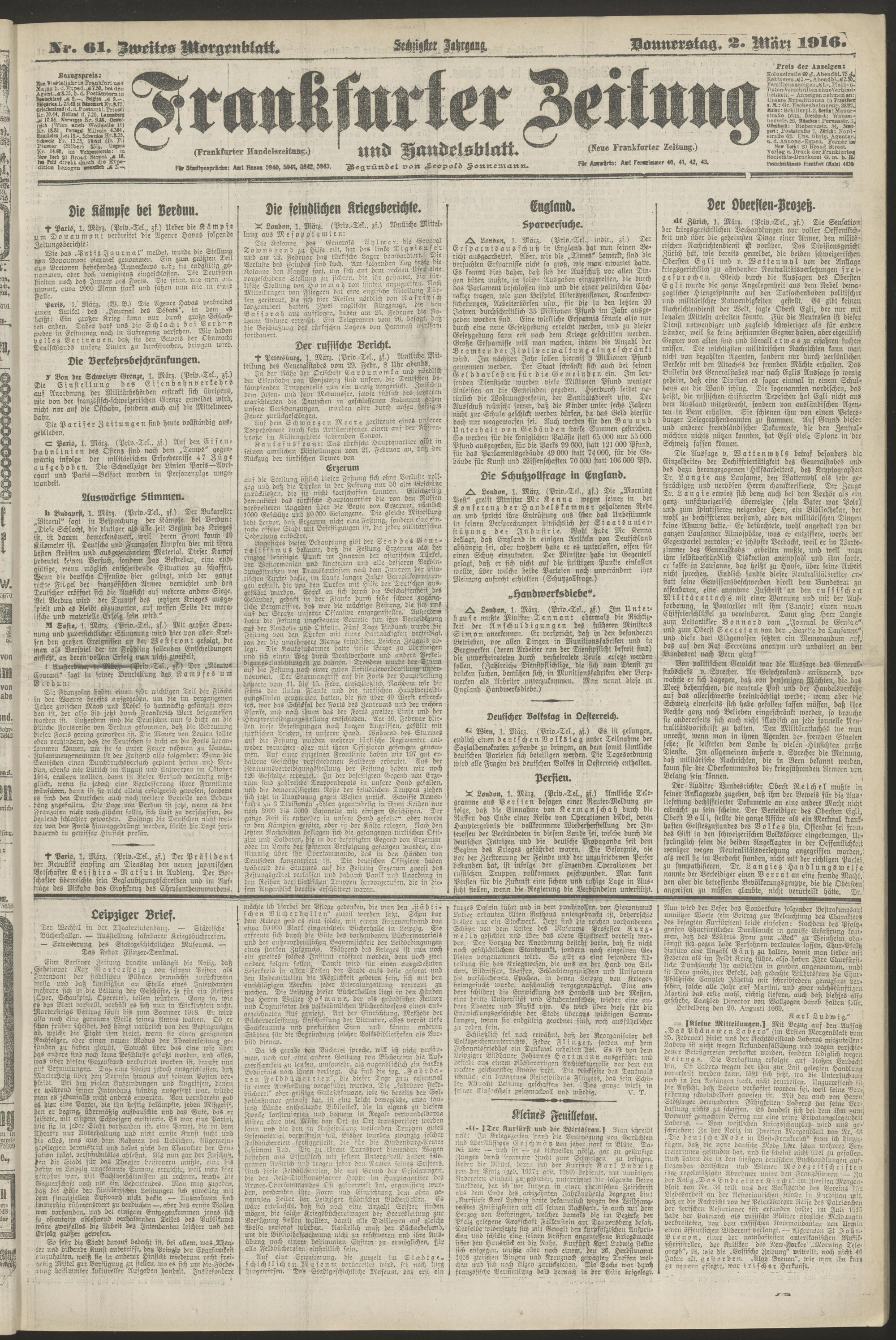 02.03.1916 = Nr. 61. Zweites Morgenblatt