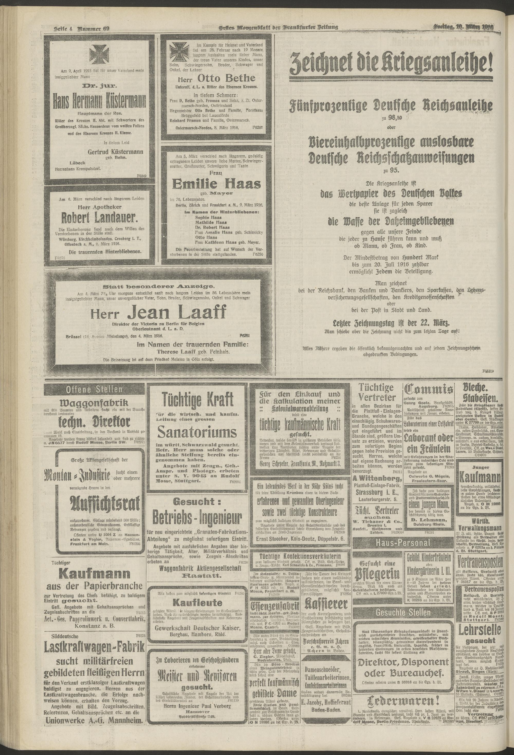 10.03.1916 = Nr. 69. Erstes Morgenblatt