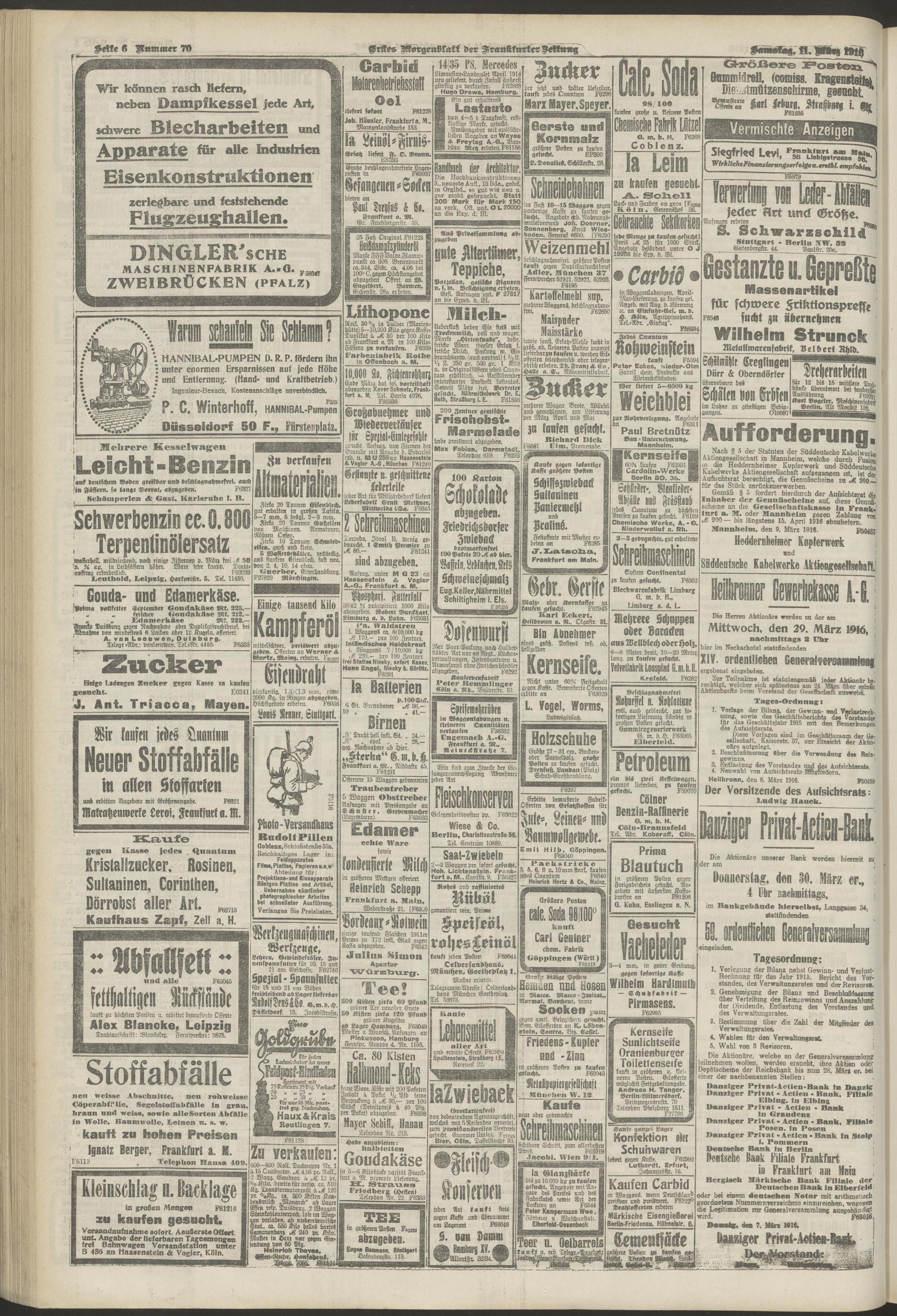 11.03.1916 = Nr. 70. Erstes Morgenblatt