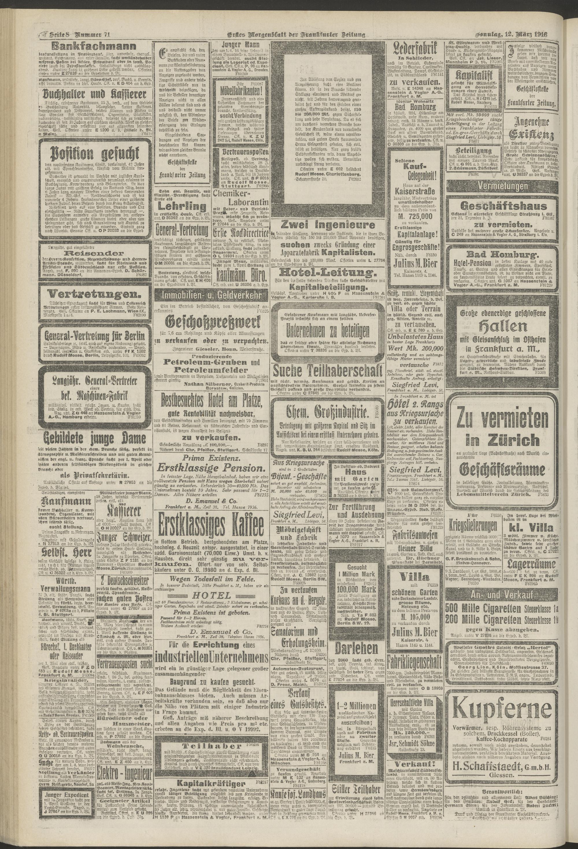 12.03.1916 = Nr. 71. Erstes Morgenblatt