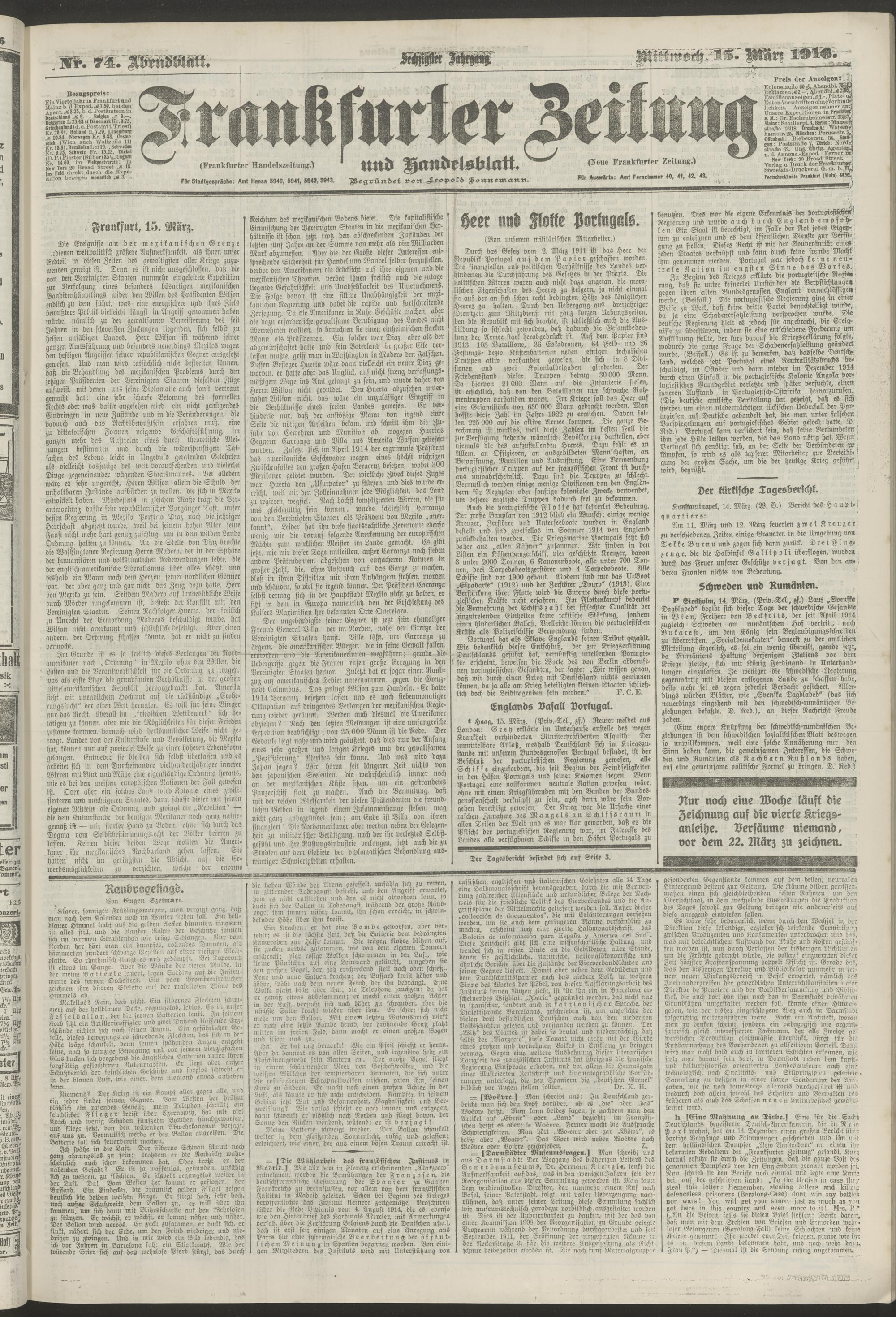 15.03.1916 = Nr. 74. Abendblatt