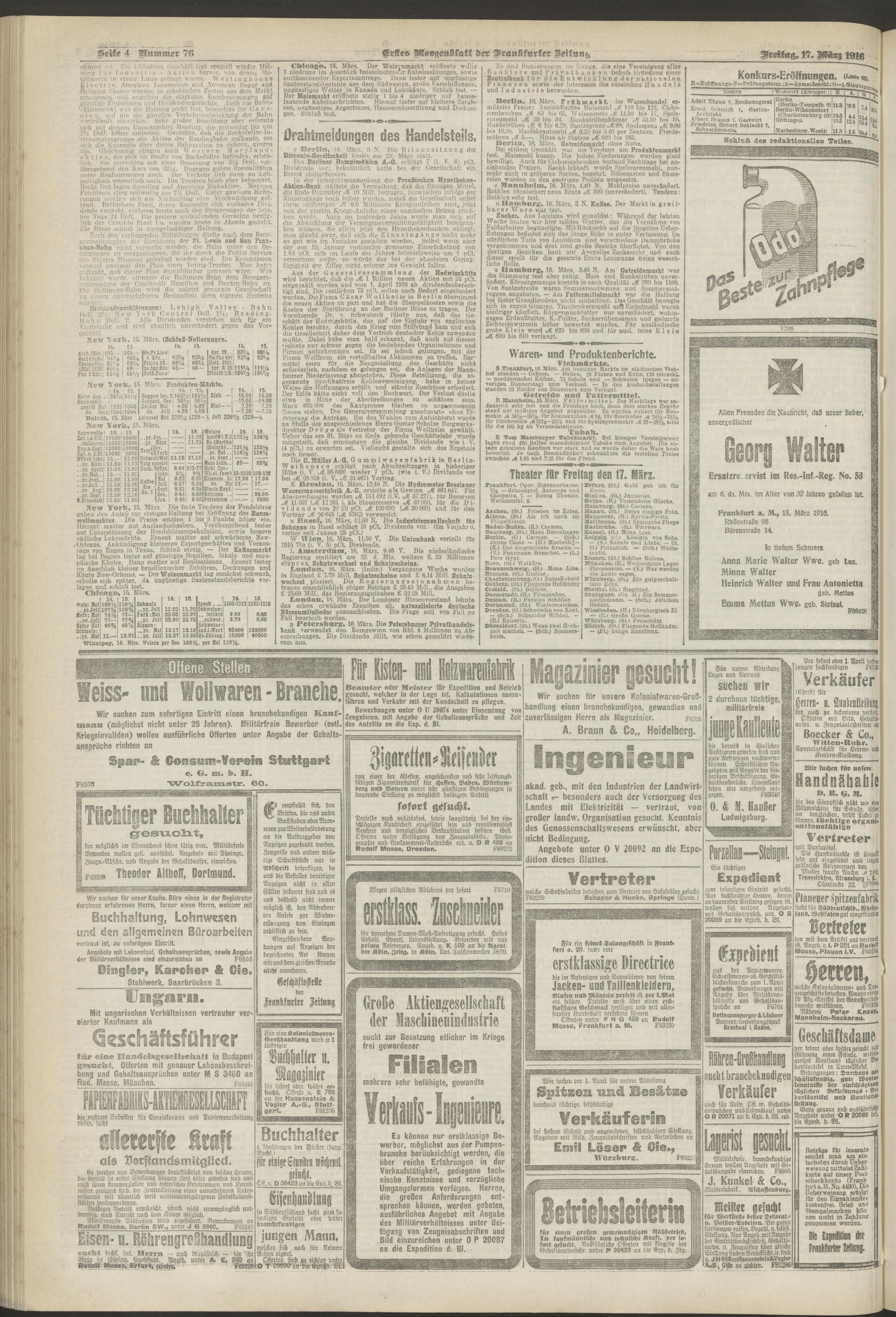 17.03.1916 = Nr. 76. Erstes Morgenblatt