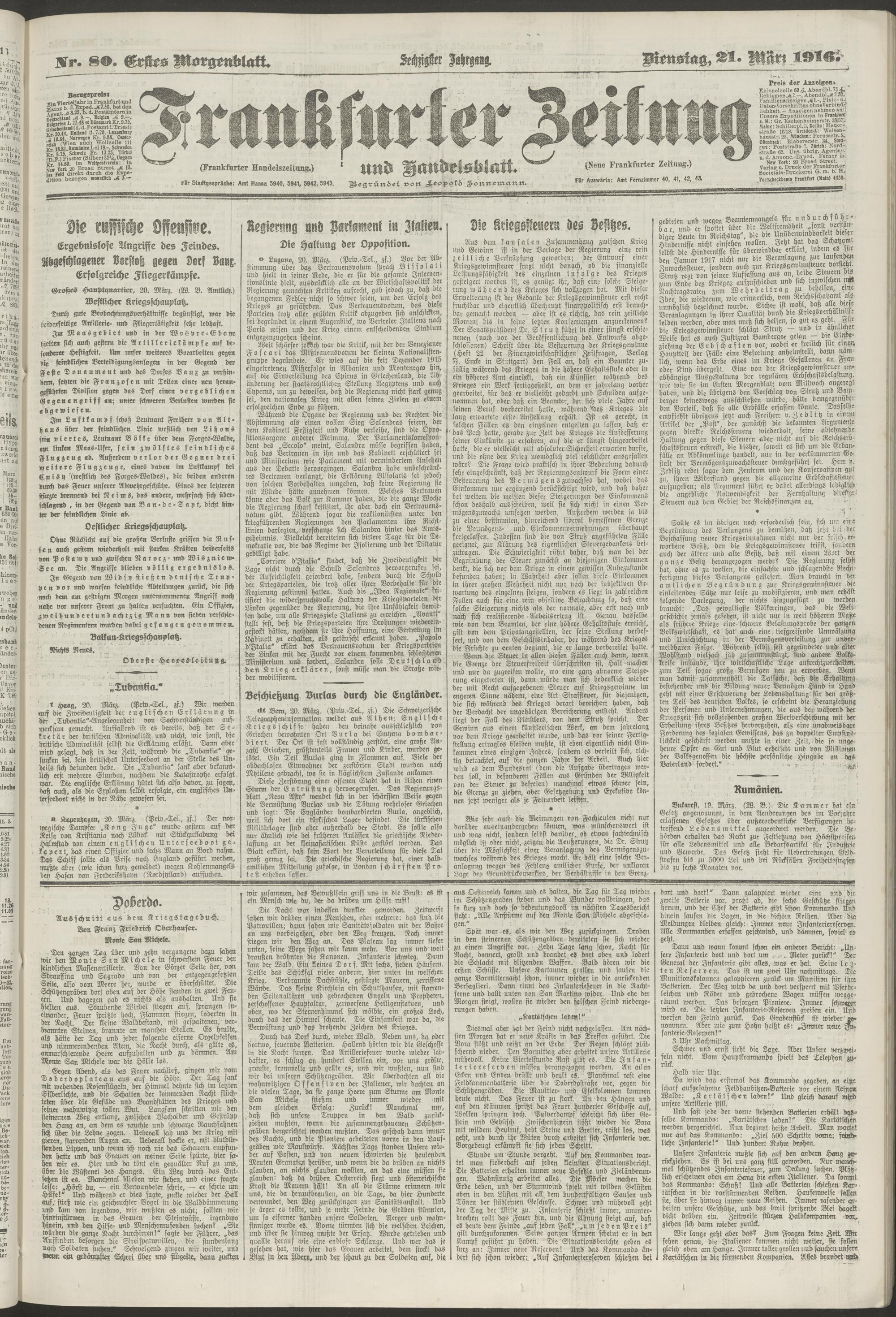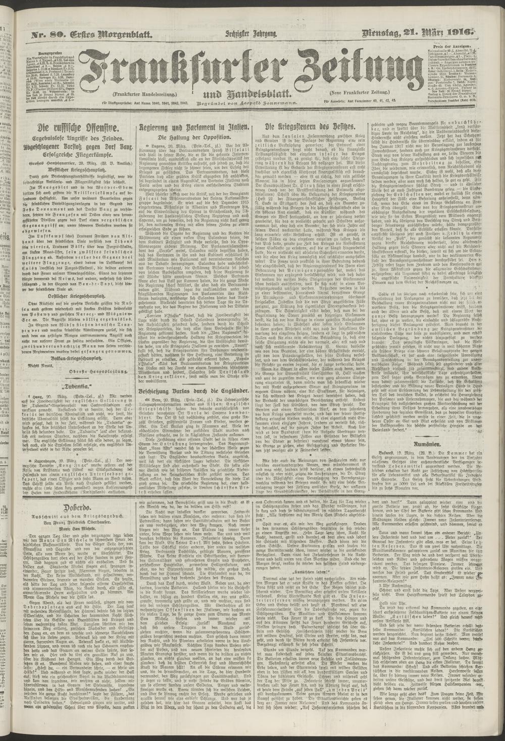 21.03.1916 = Nr. 80. Erstes Morgenblatt