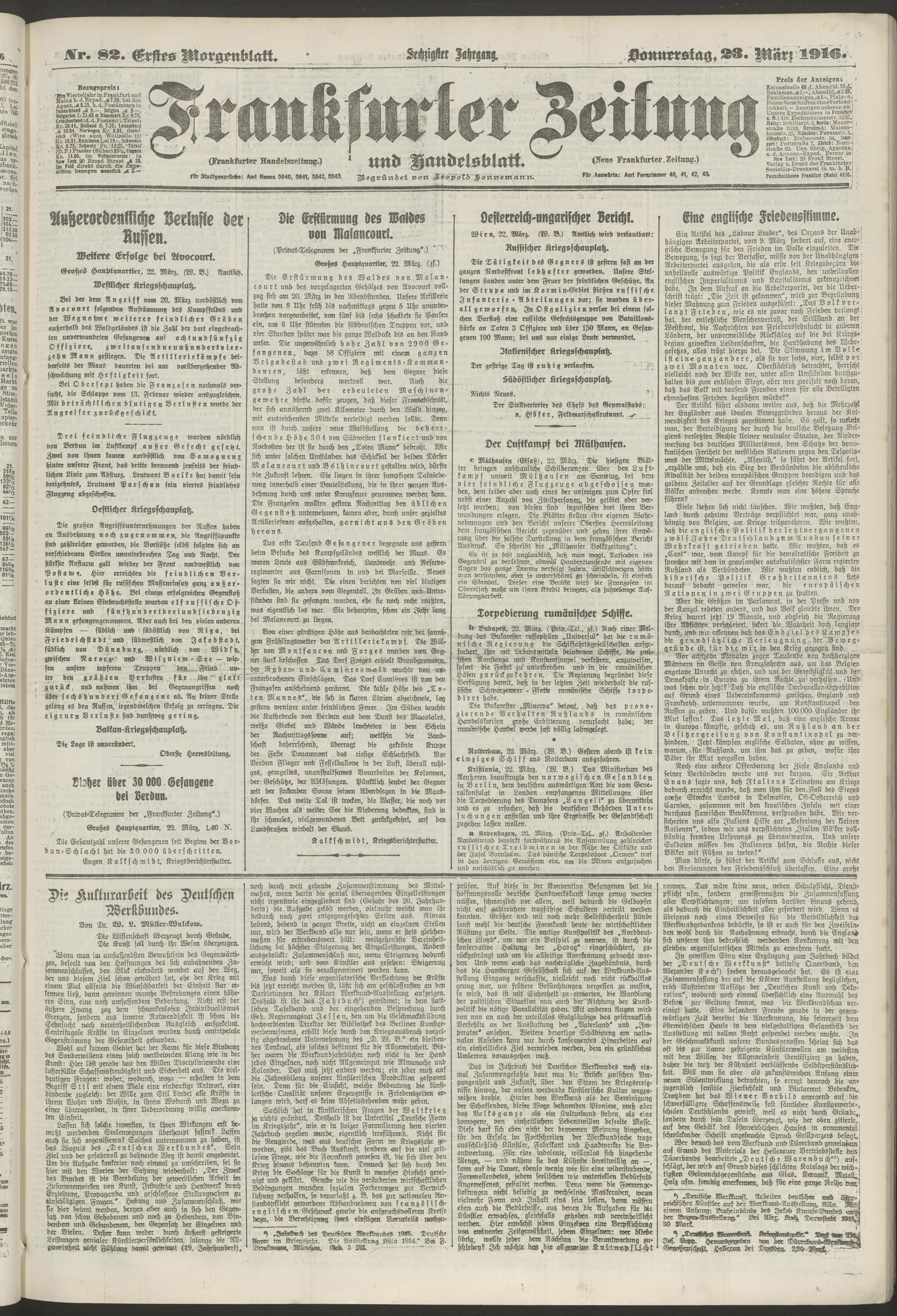23.03.1916 = Nr. 82. Erstes Morgenblatt