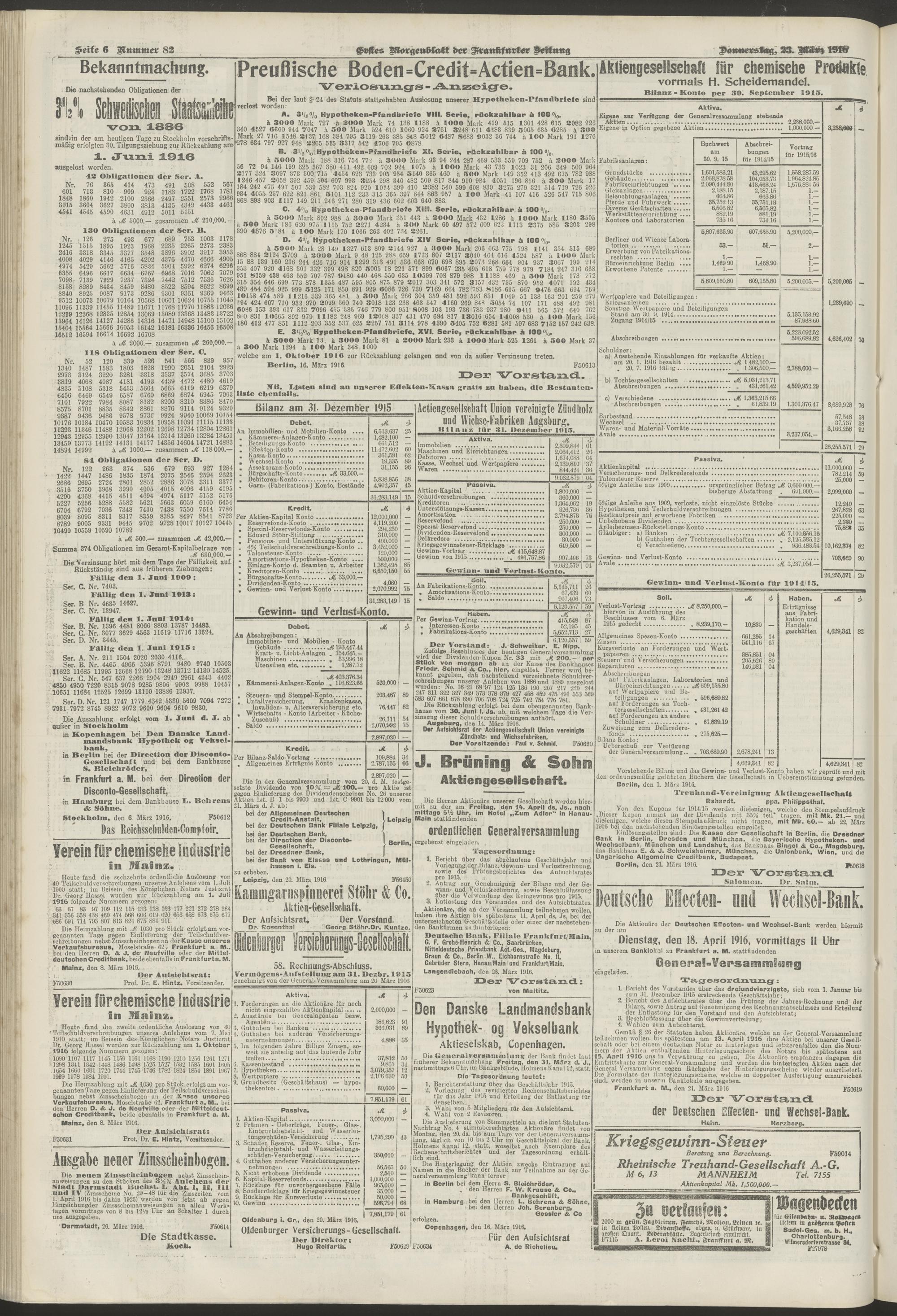 23.03.1916 = Nr. 82. Erstes Morgenblatt
