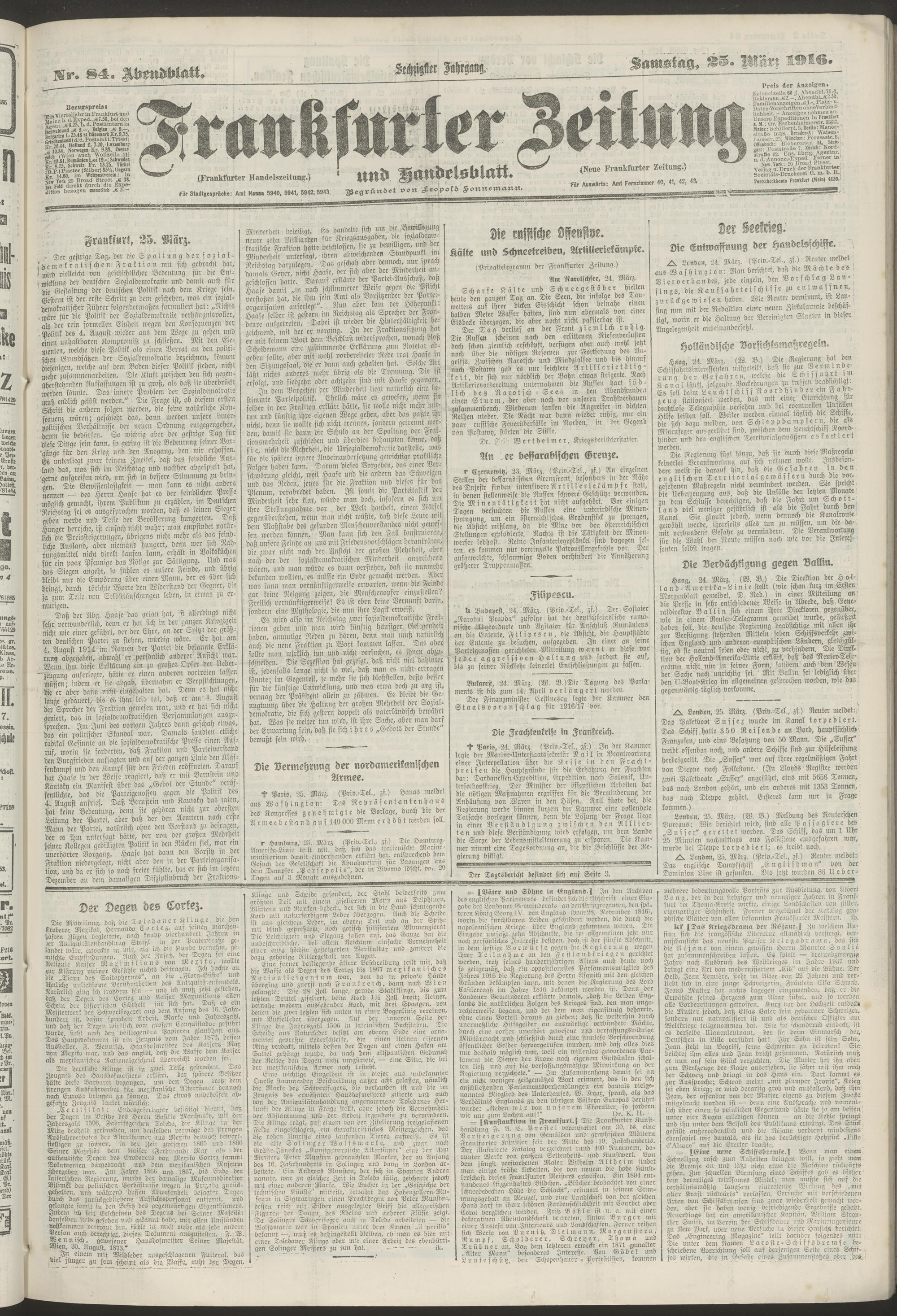 25.03.1916 = Nr. 84. Abendblatt