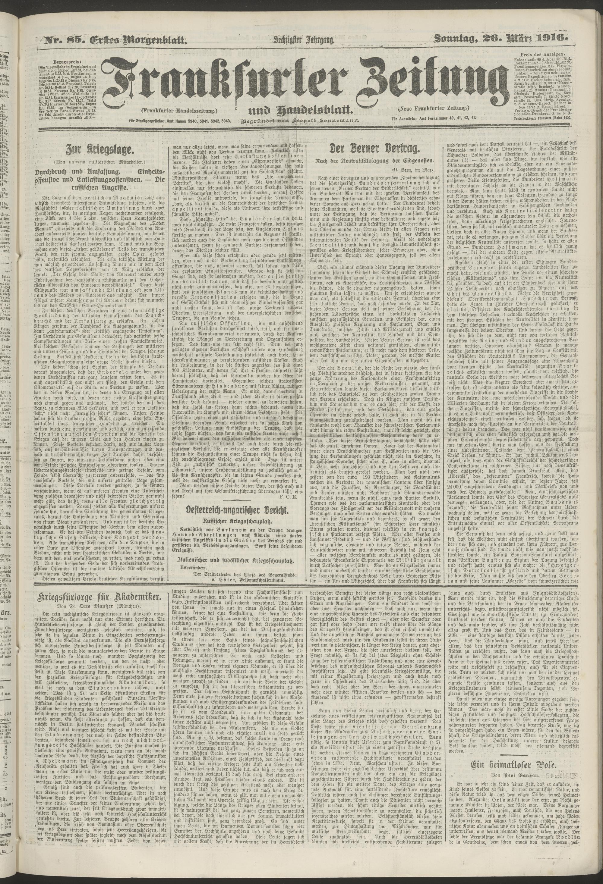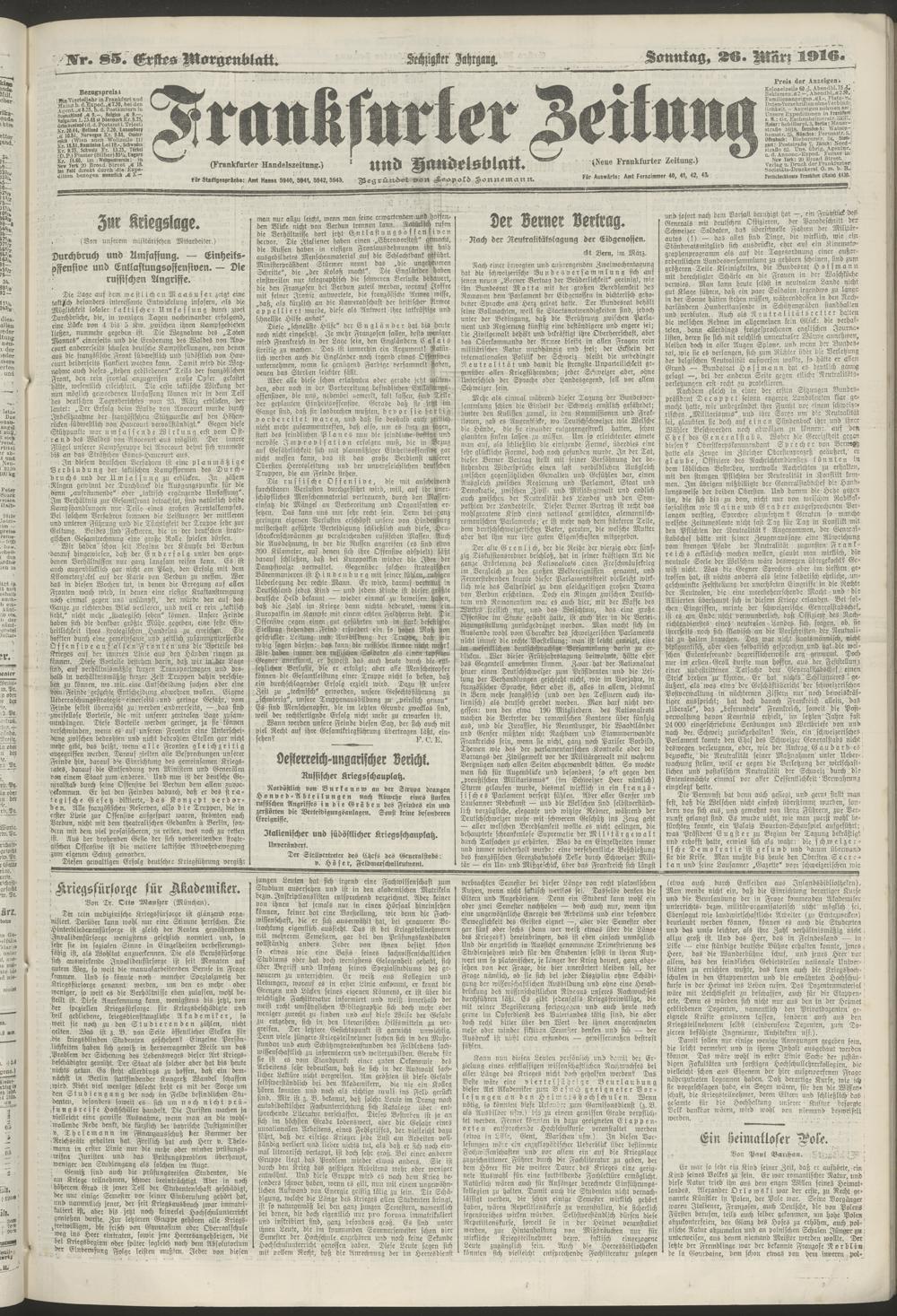 26.03.1916 = Nr. 85. Erstes Morgenblatt