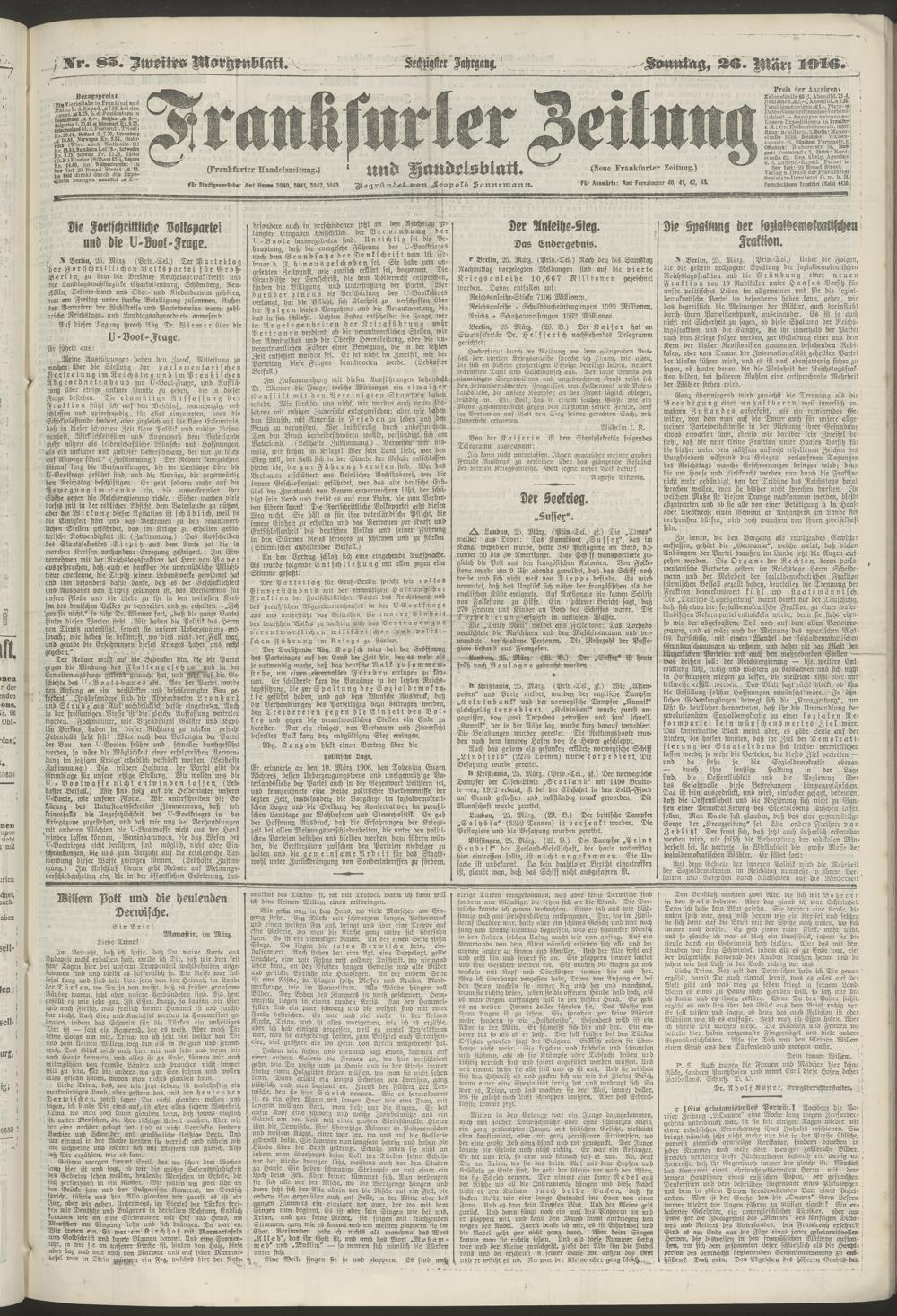 26.03.1916 = Nr. 85. Zweites Morgenblatt