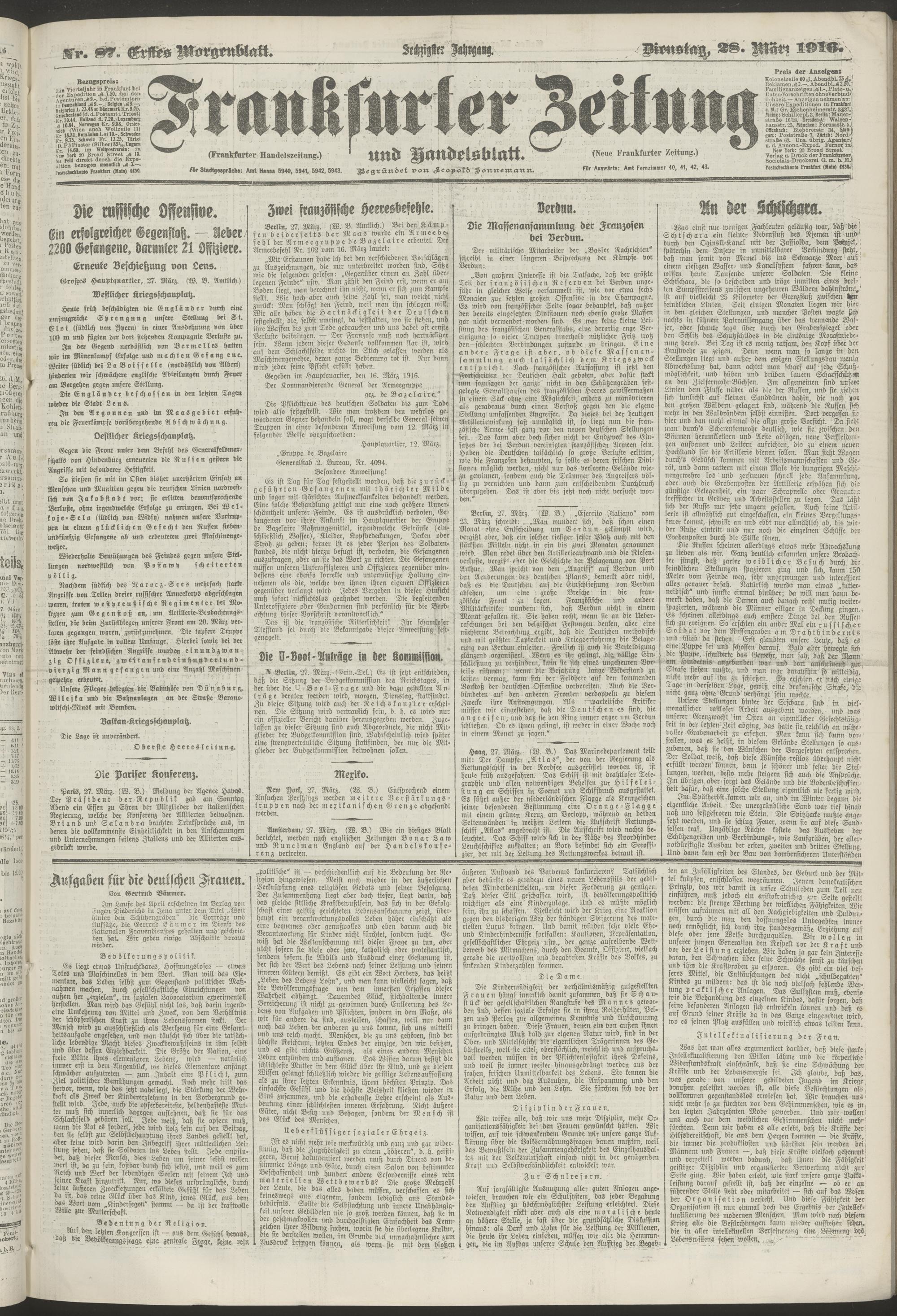 28.03.1916 = Nr. 87. Erstes Morgenblatt