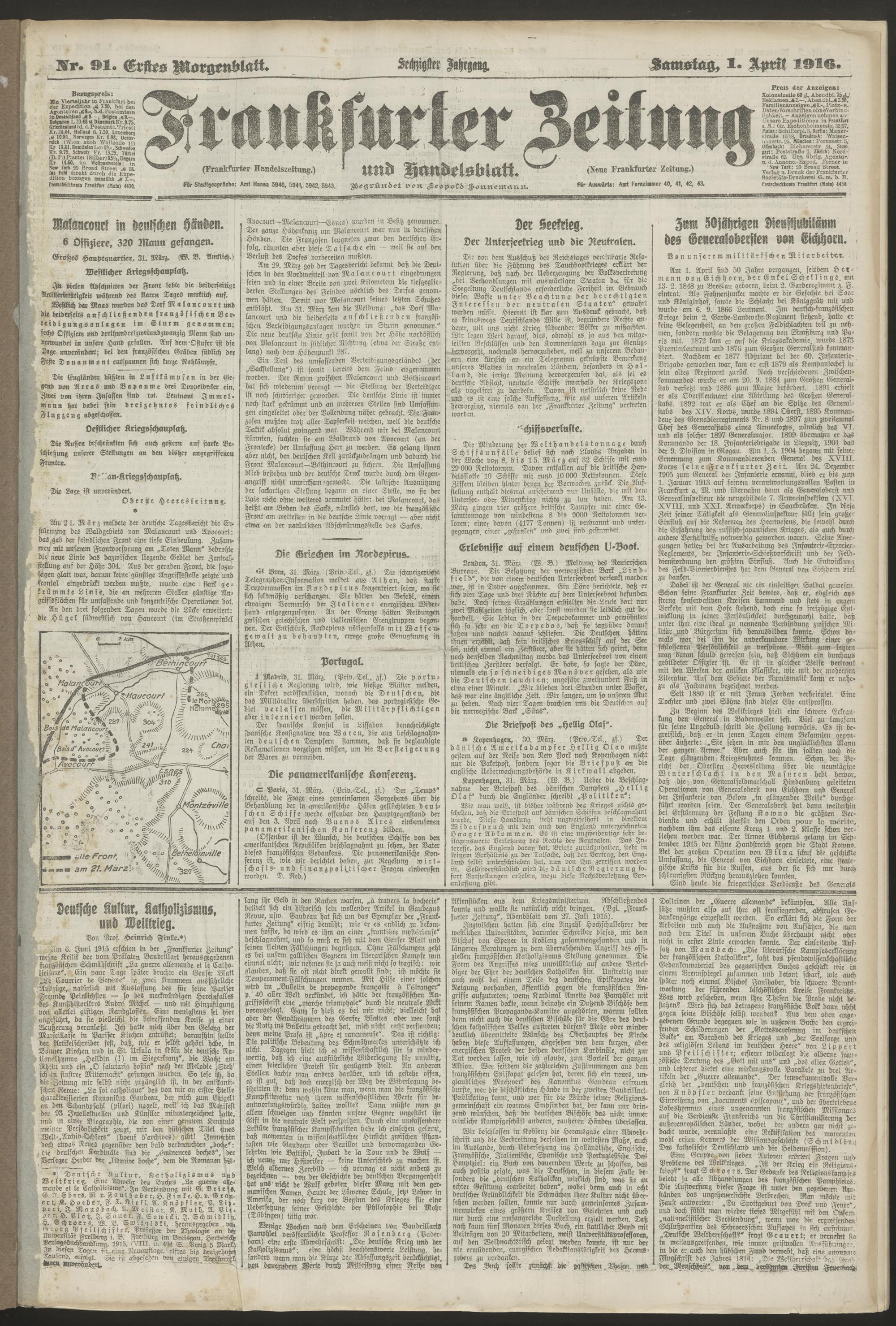 01.04.1916 = Nr. 91. Erstes Morgenblatt