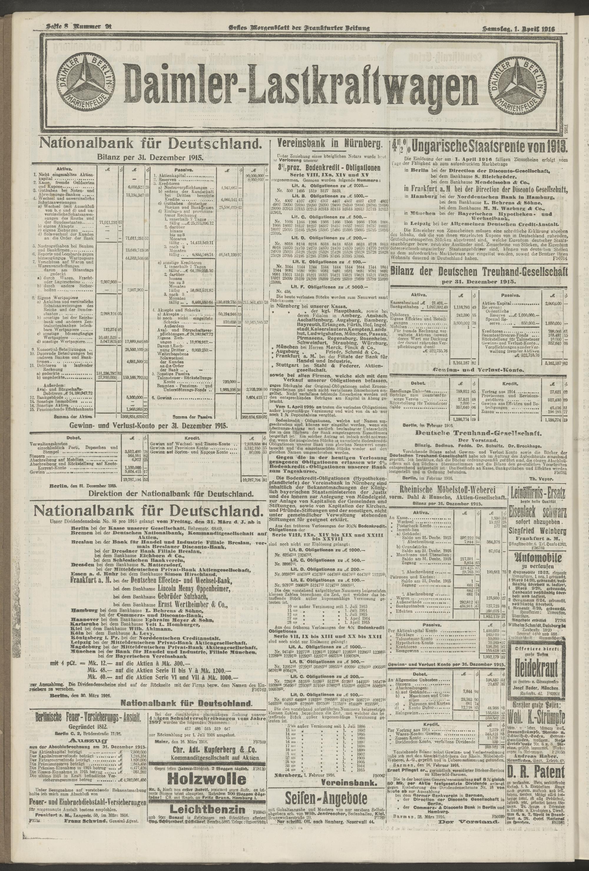 01.04.1916 = Nr. 91. Erstes Morgenblatt