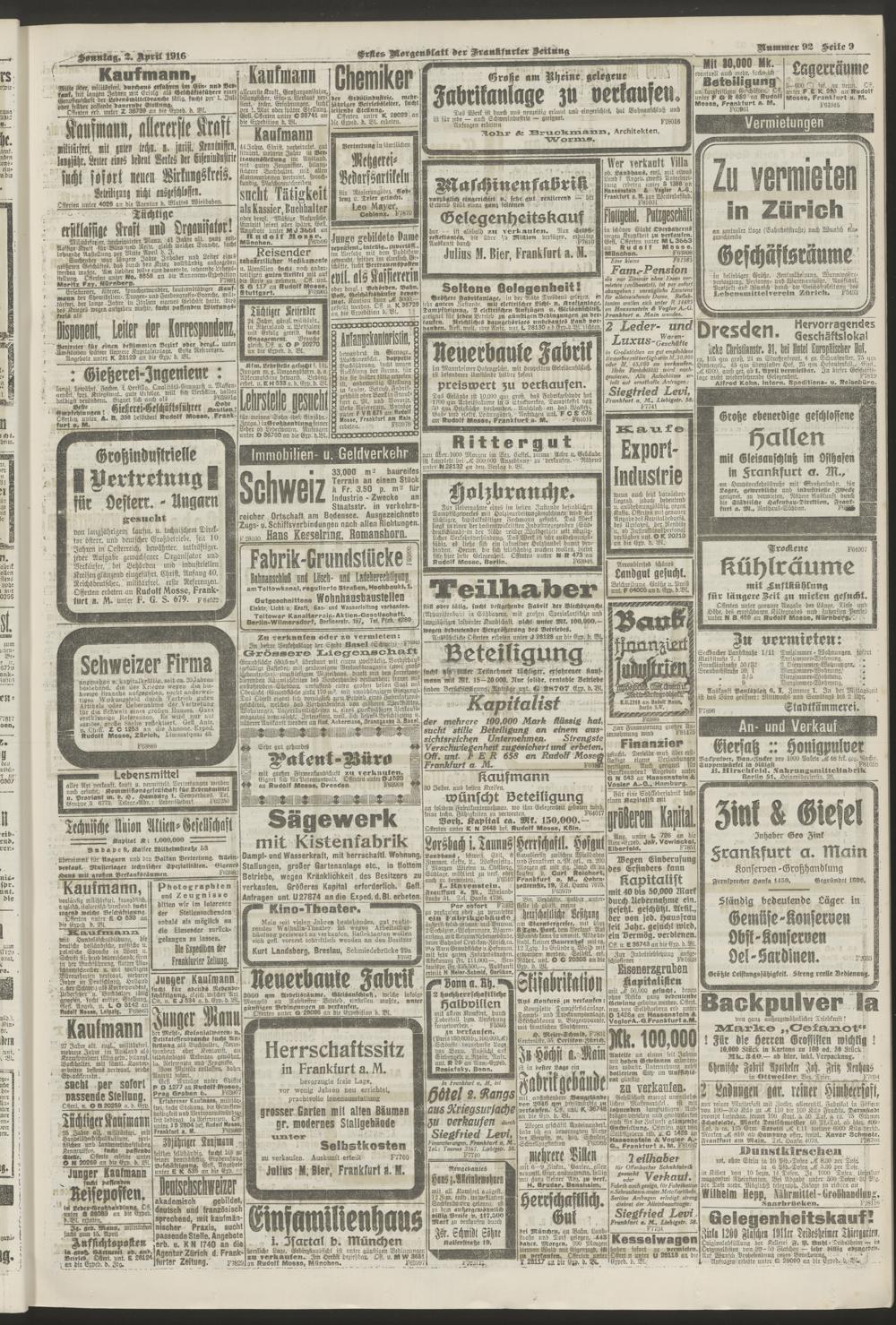 02.04.1916 = Nr. 92. Erstes Morgenblatt