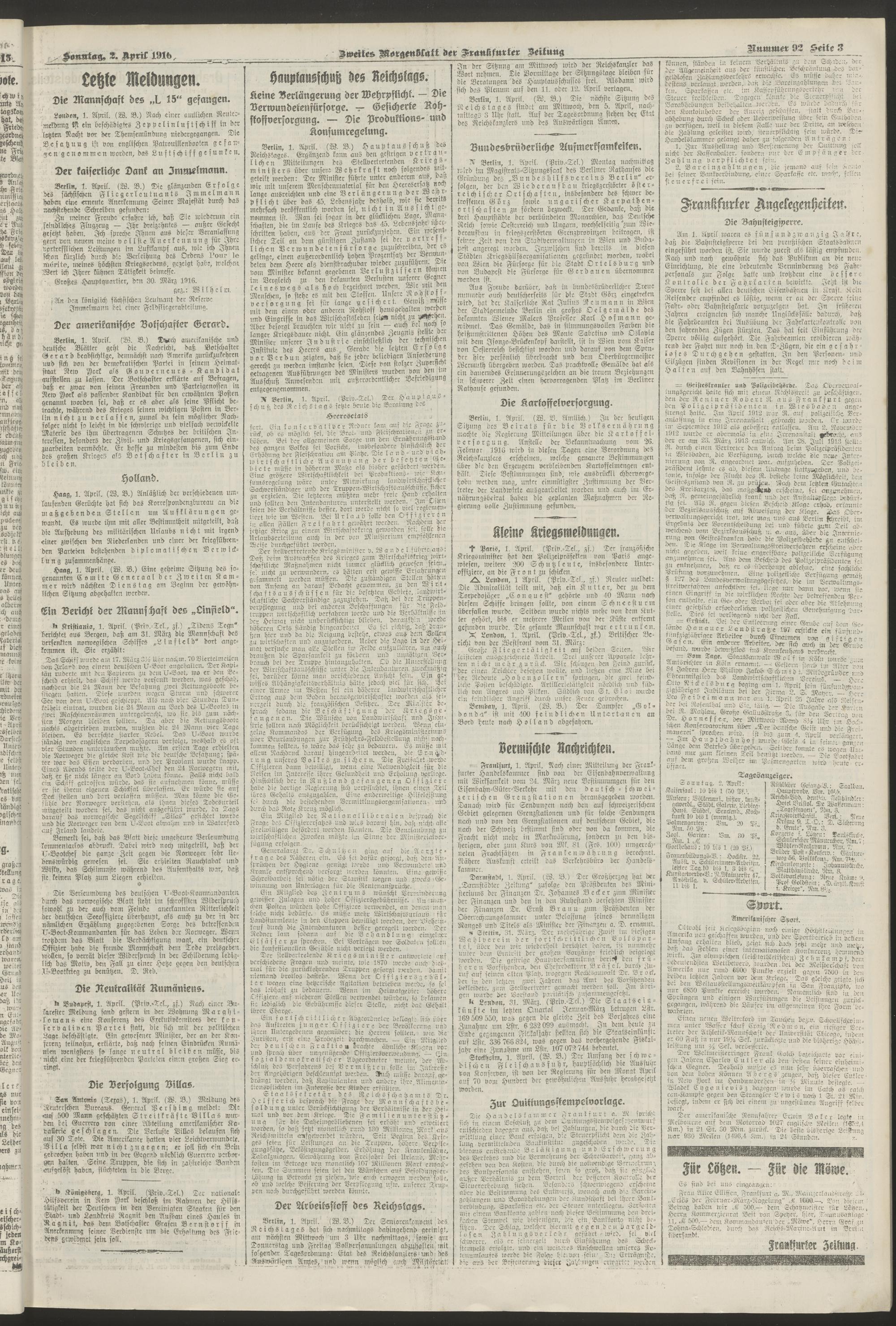02.04.1916 = Nr. 92. Erstes Morgenblatt