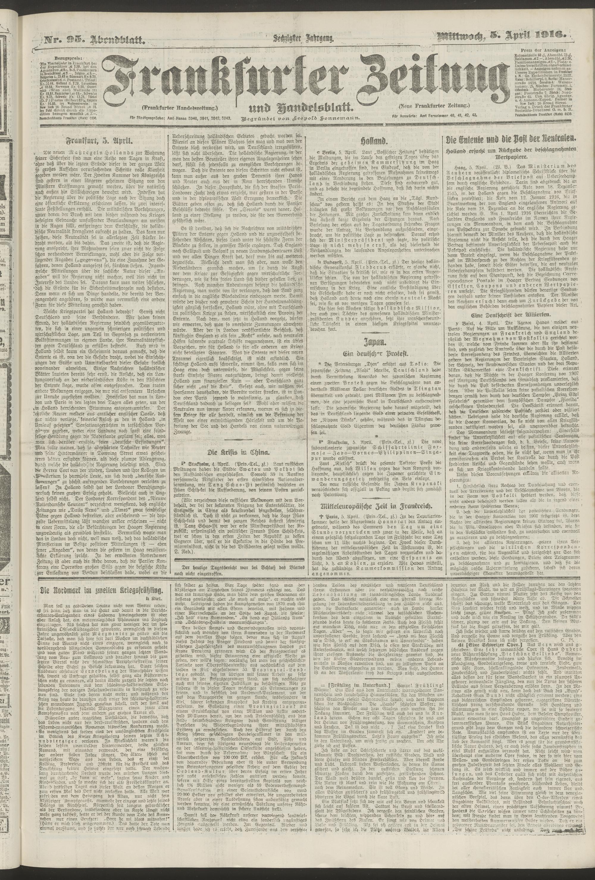 05.04.1916 = Nr. 95. Abendblatt