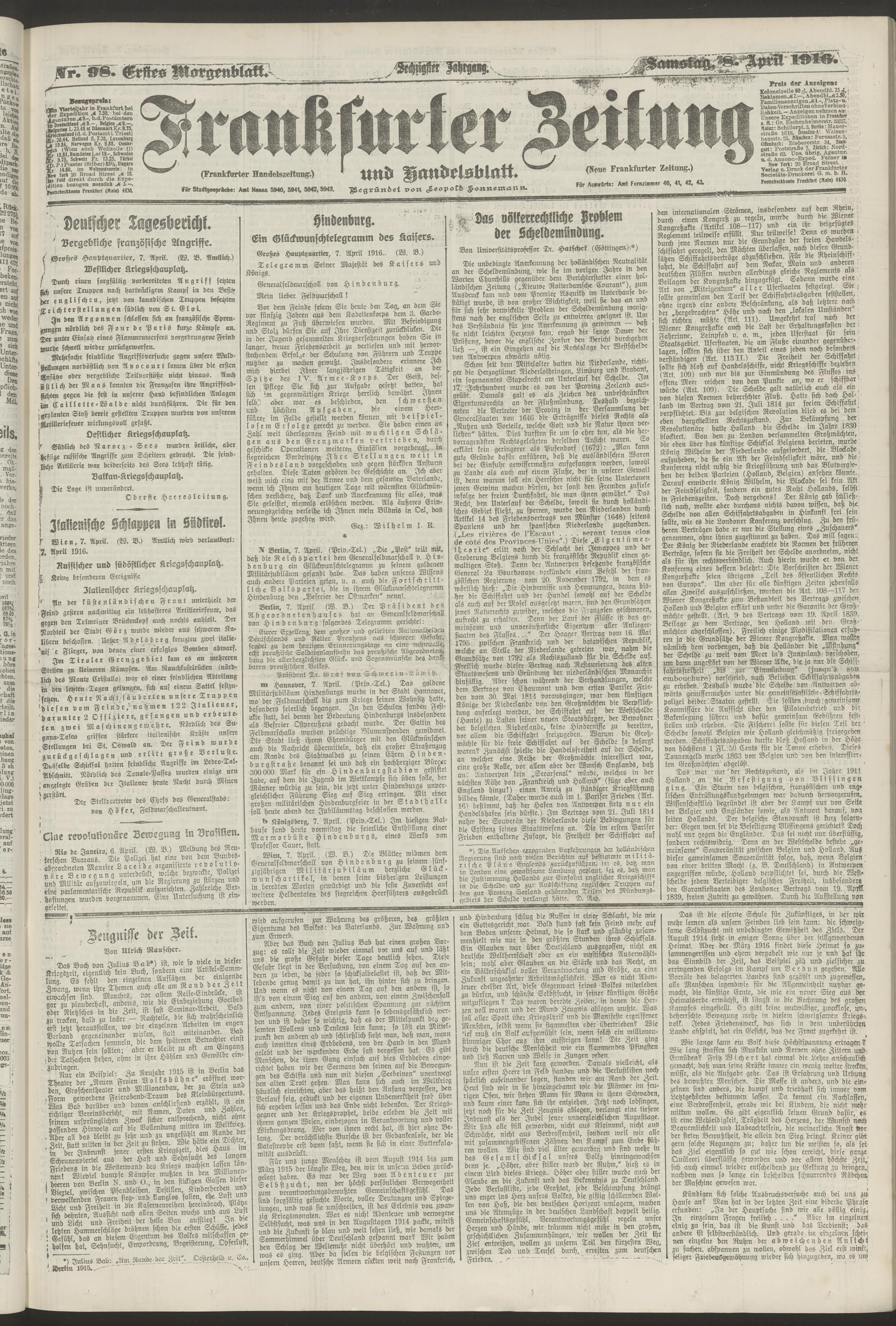 08.04.1916 = Nr. 98. Erstes Morgenblatt