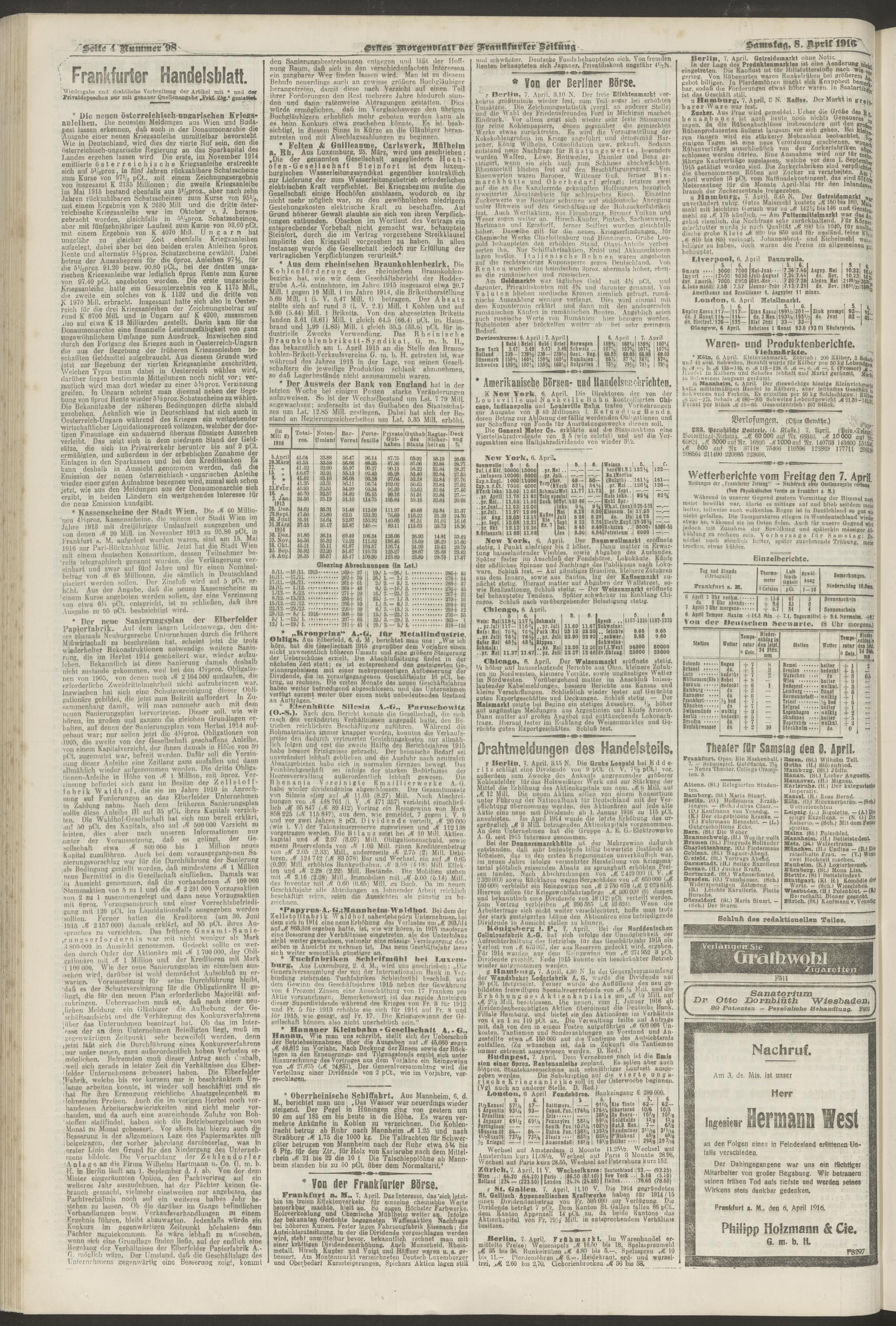 08.04.1916 = Nr. 98. Erstes Morgenblatt
