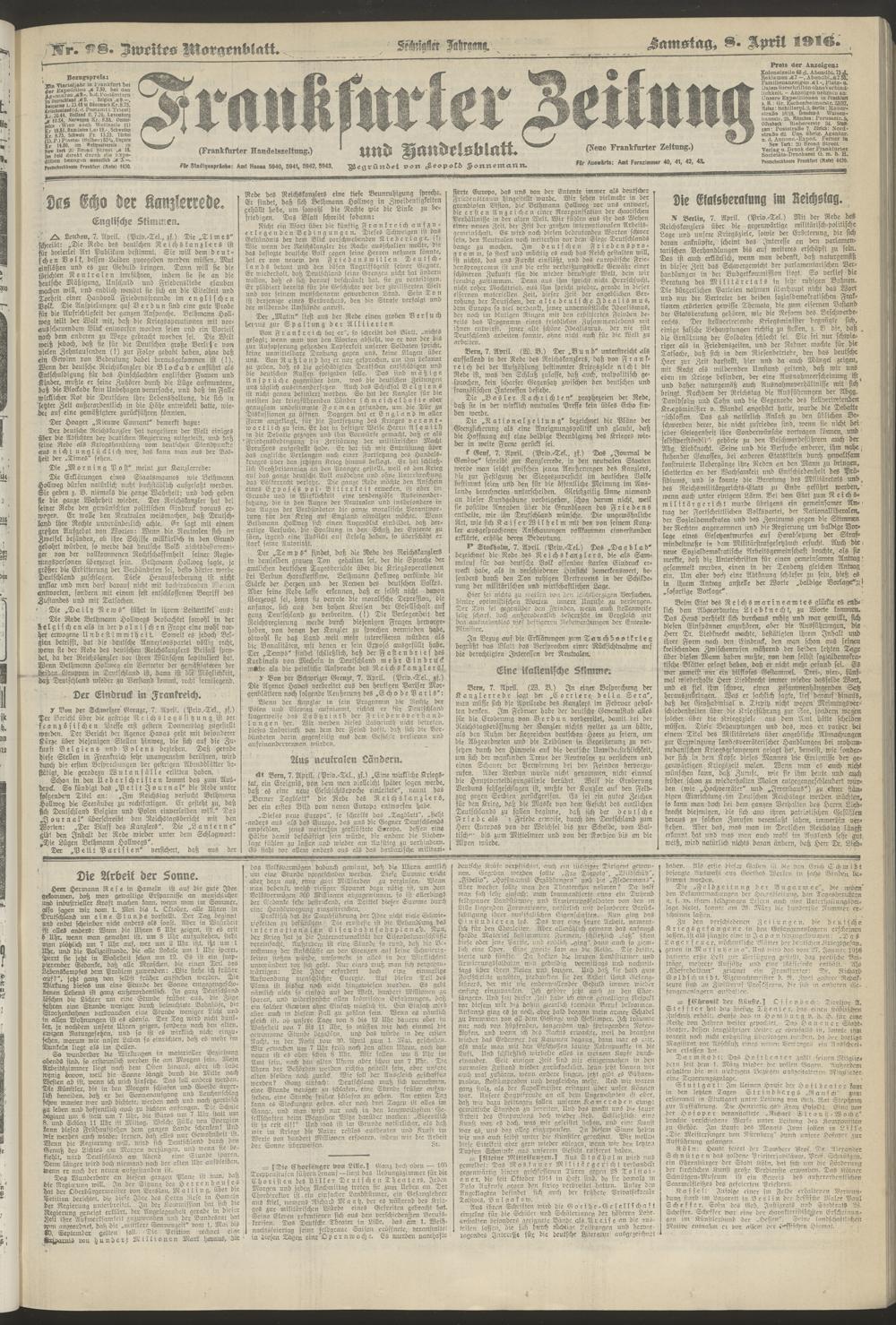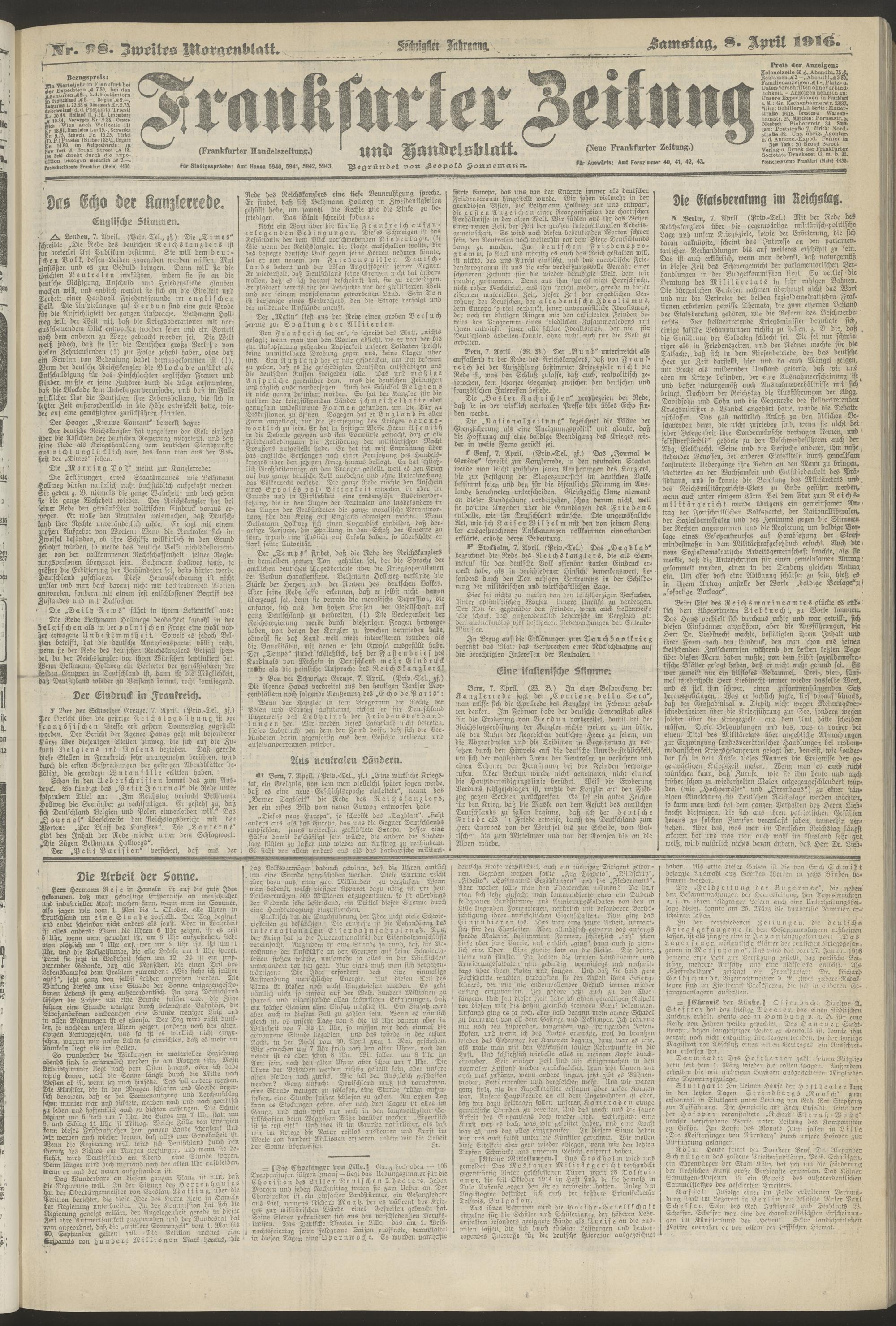 08.04.1916 = Nr. 98. Zweites Morgenblatt