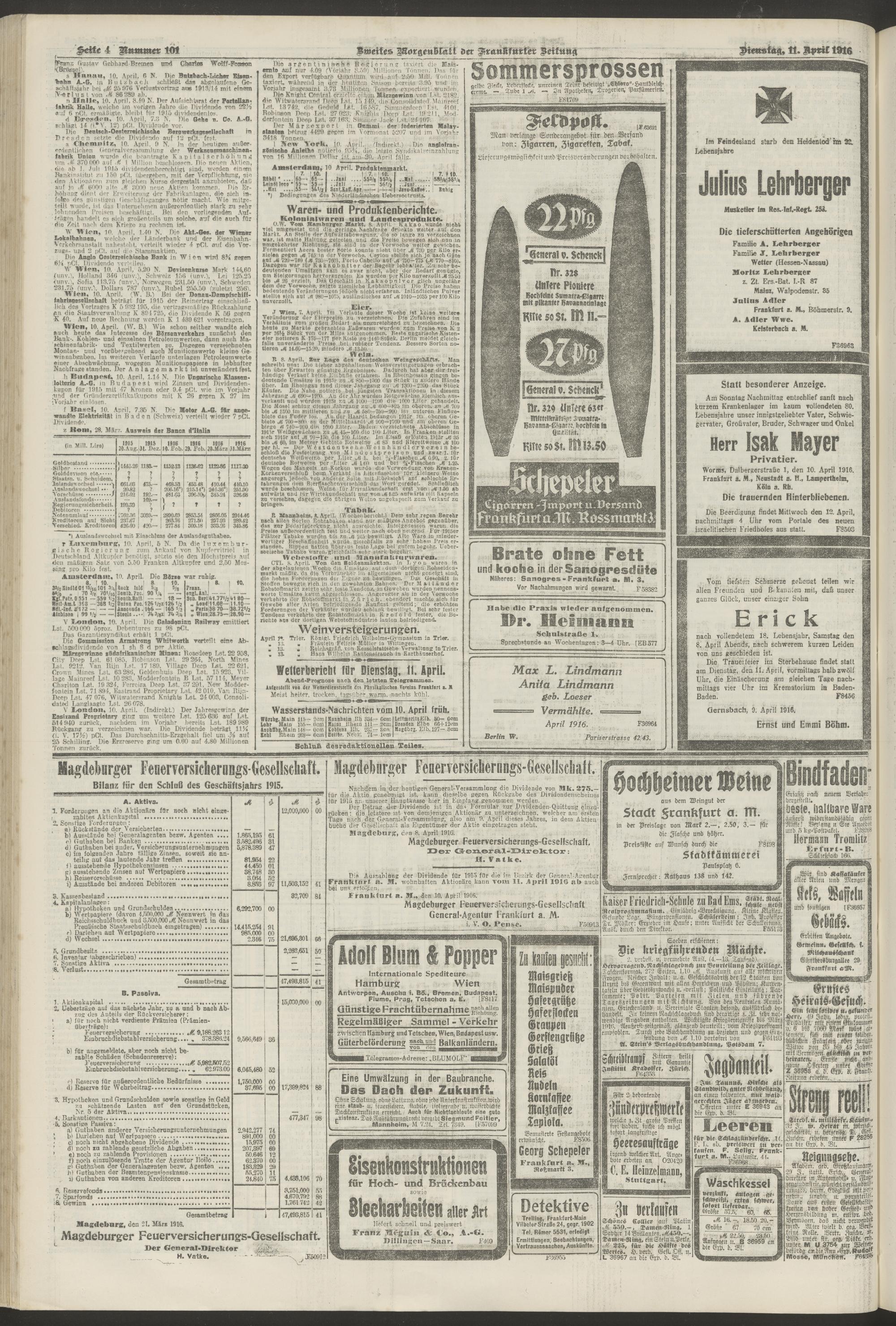 11.04.1916 = Nr. 101. Zweites Morgenblatt