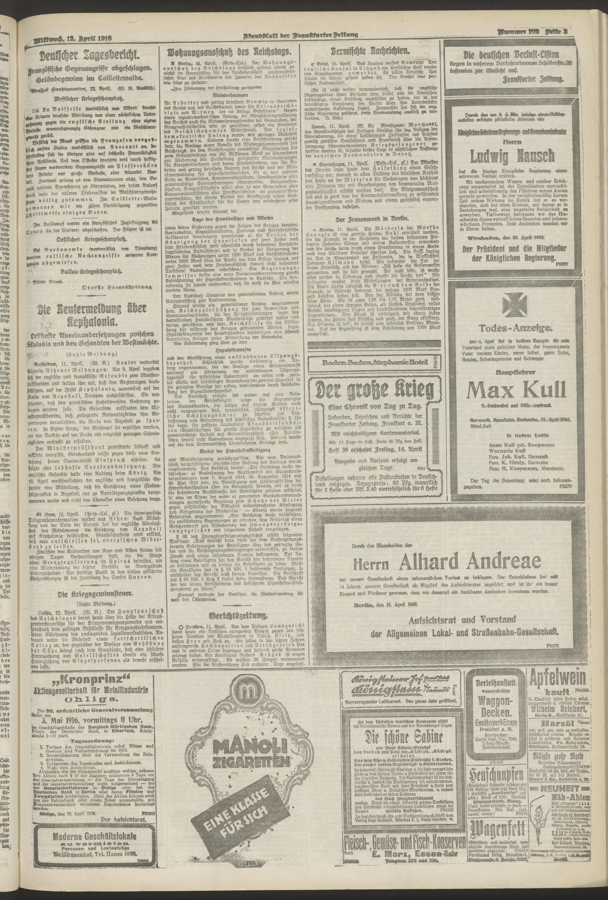 12.04.1916 = Nr. 102. Abendblatt