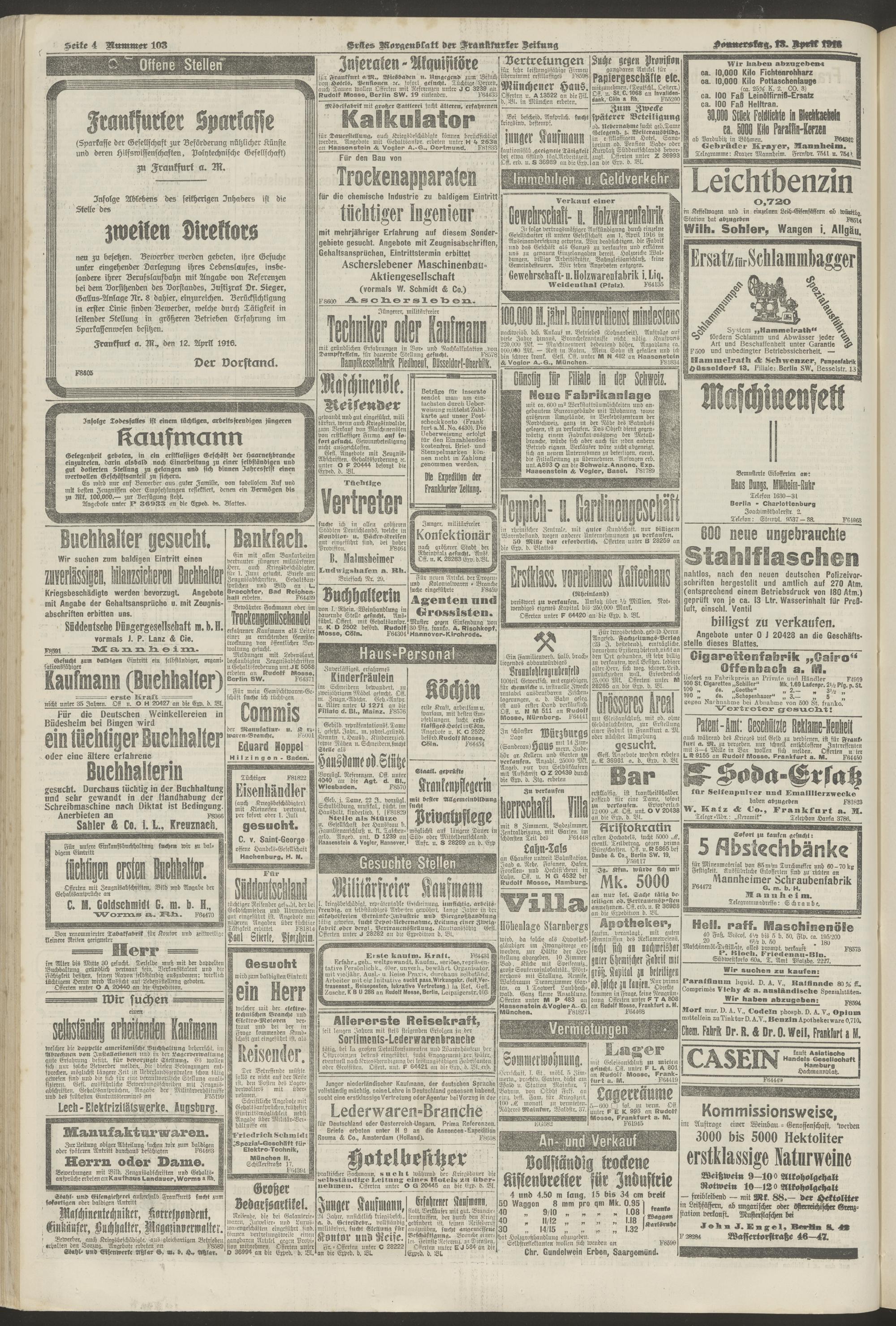13.04.1916 = Nr. 103. Erstes Morgenblatt