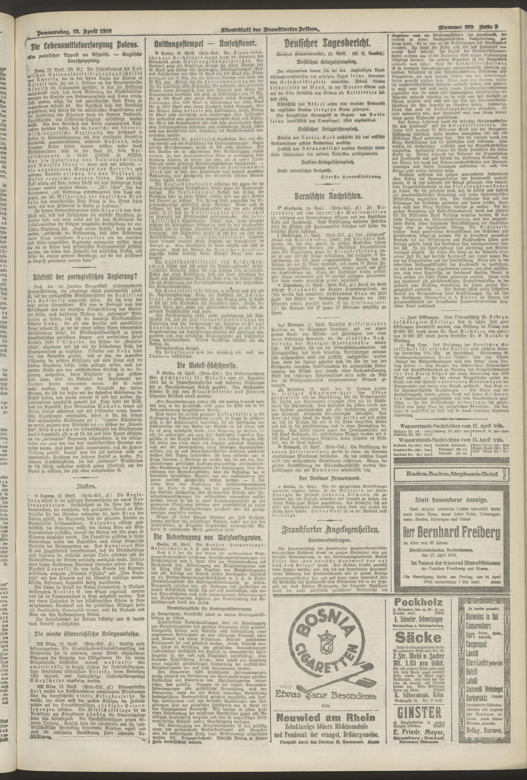 13.04.1916 = Nr. 103. Abendblatt