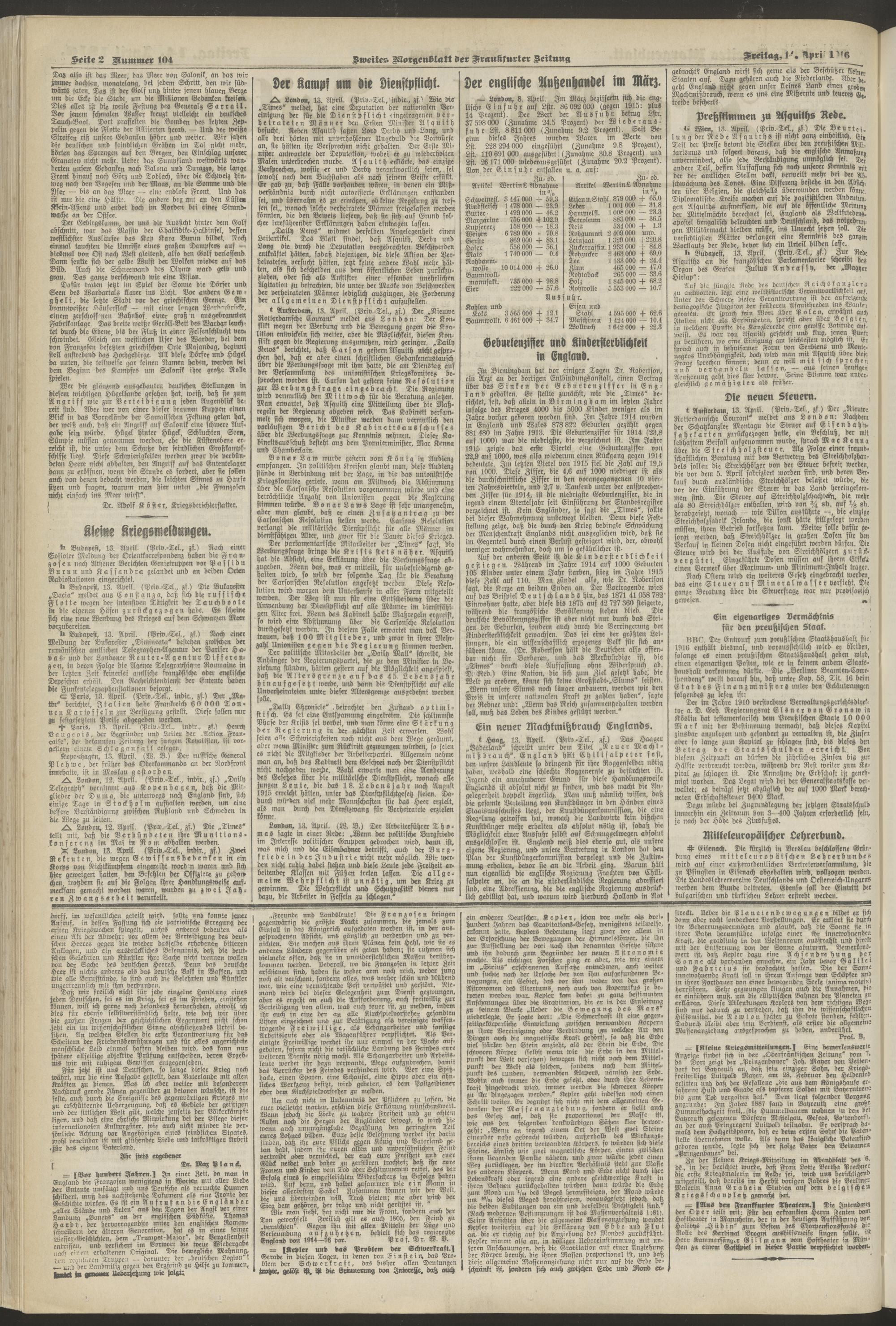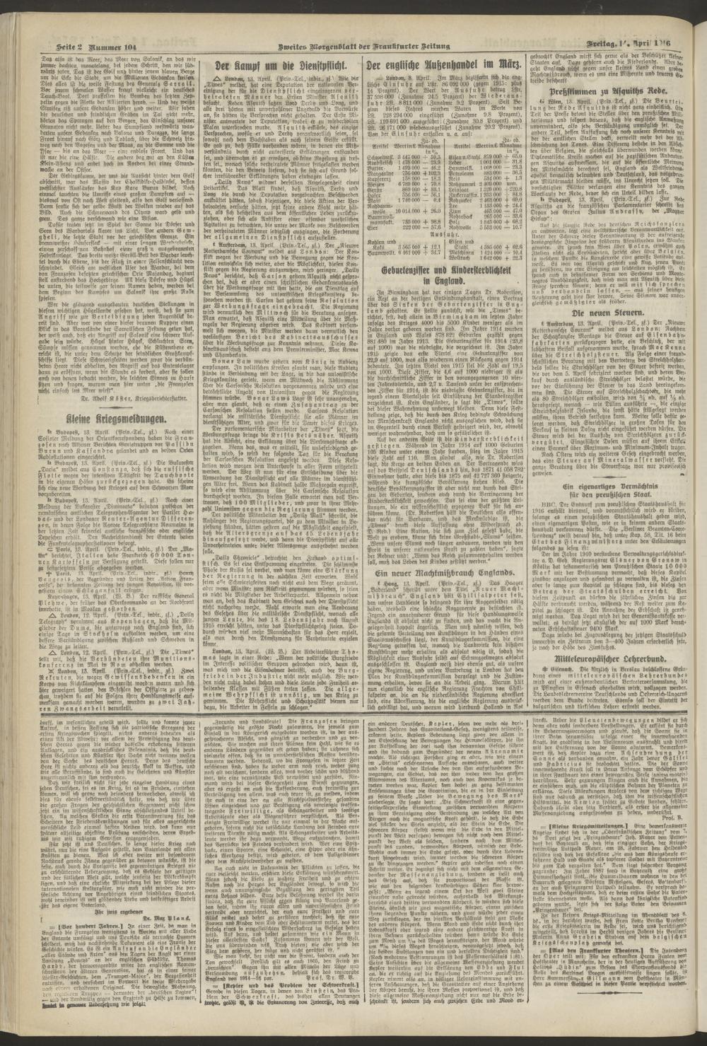 14.04.1916 = Nr. 104. Zweites Morgenblatt