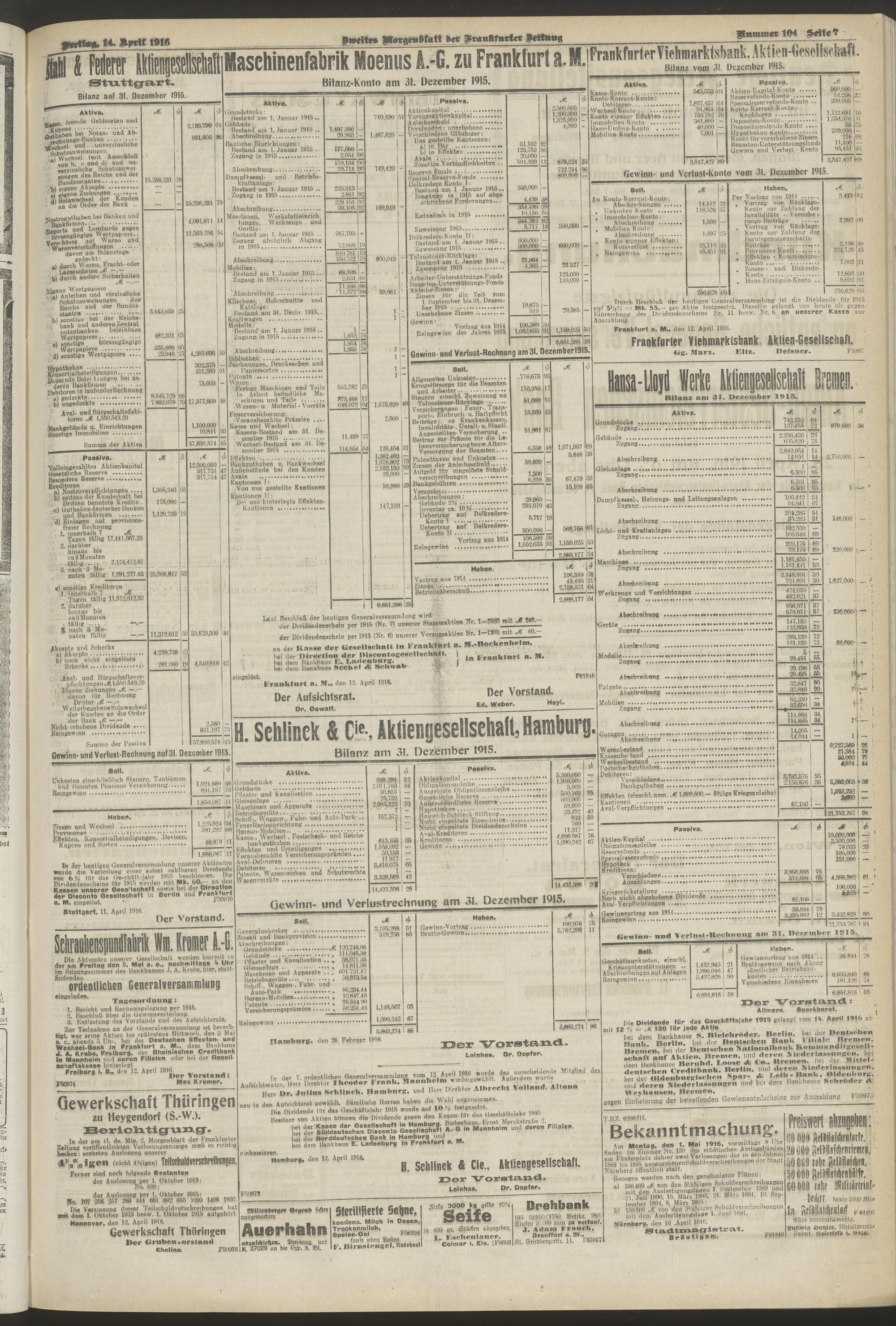 14.04.1916 = Nr. 104. Zweites Morgenblatt