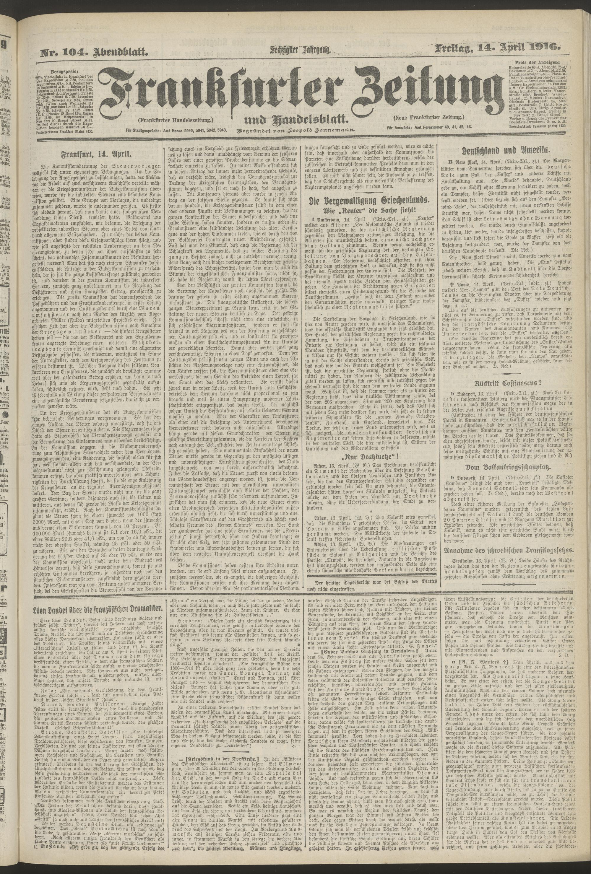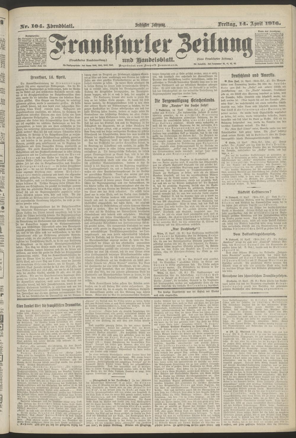 14.04.1916 = Nr. 104. Abendblatt
