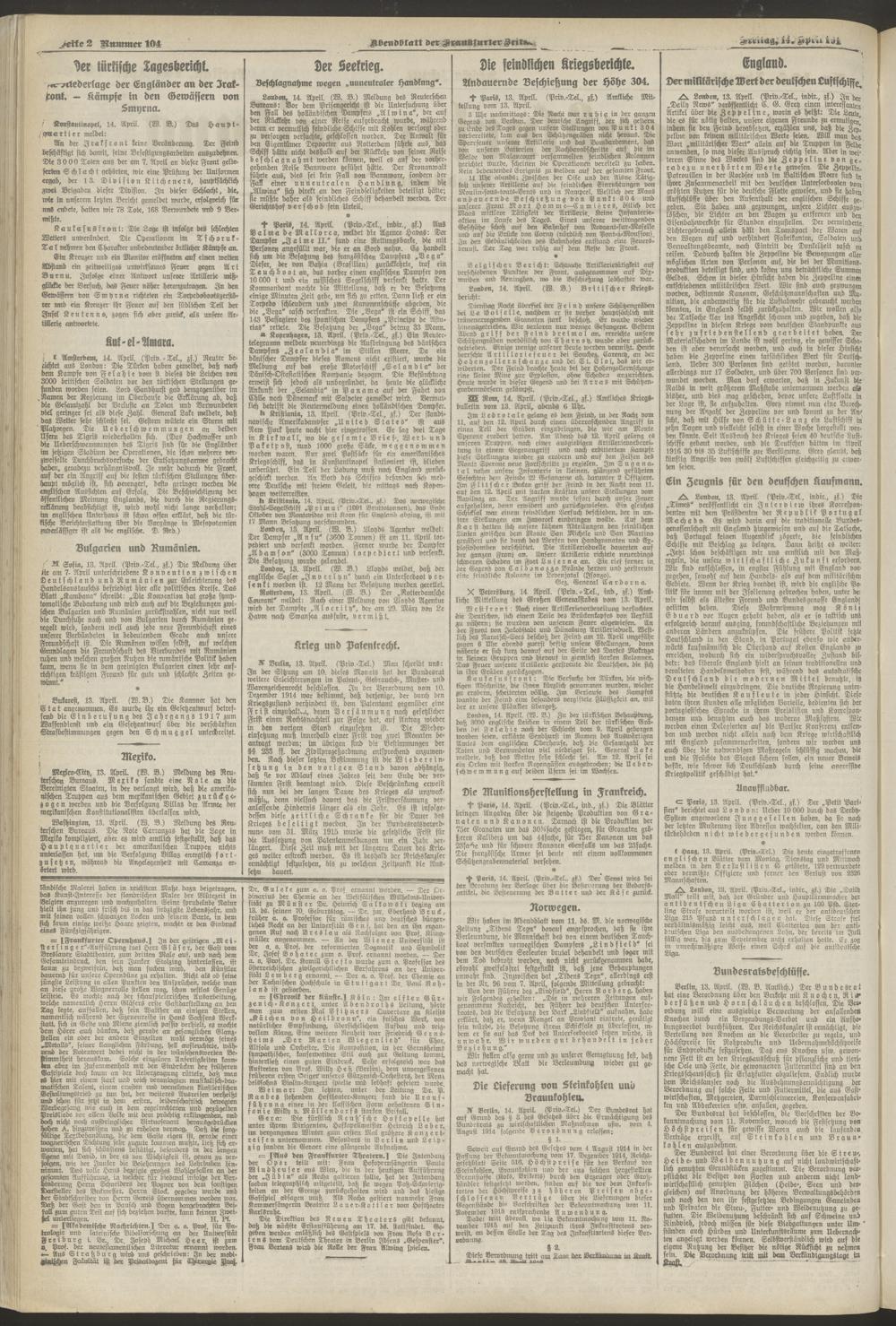 14.04.1916 = Nr. 104. Abendblatt