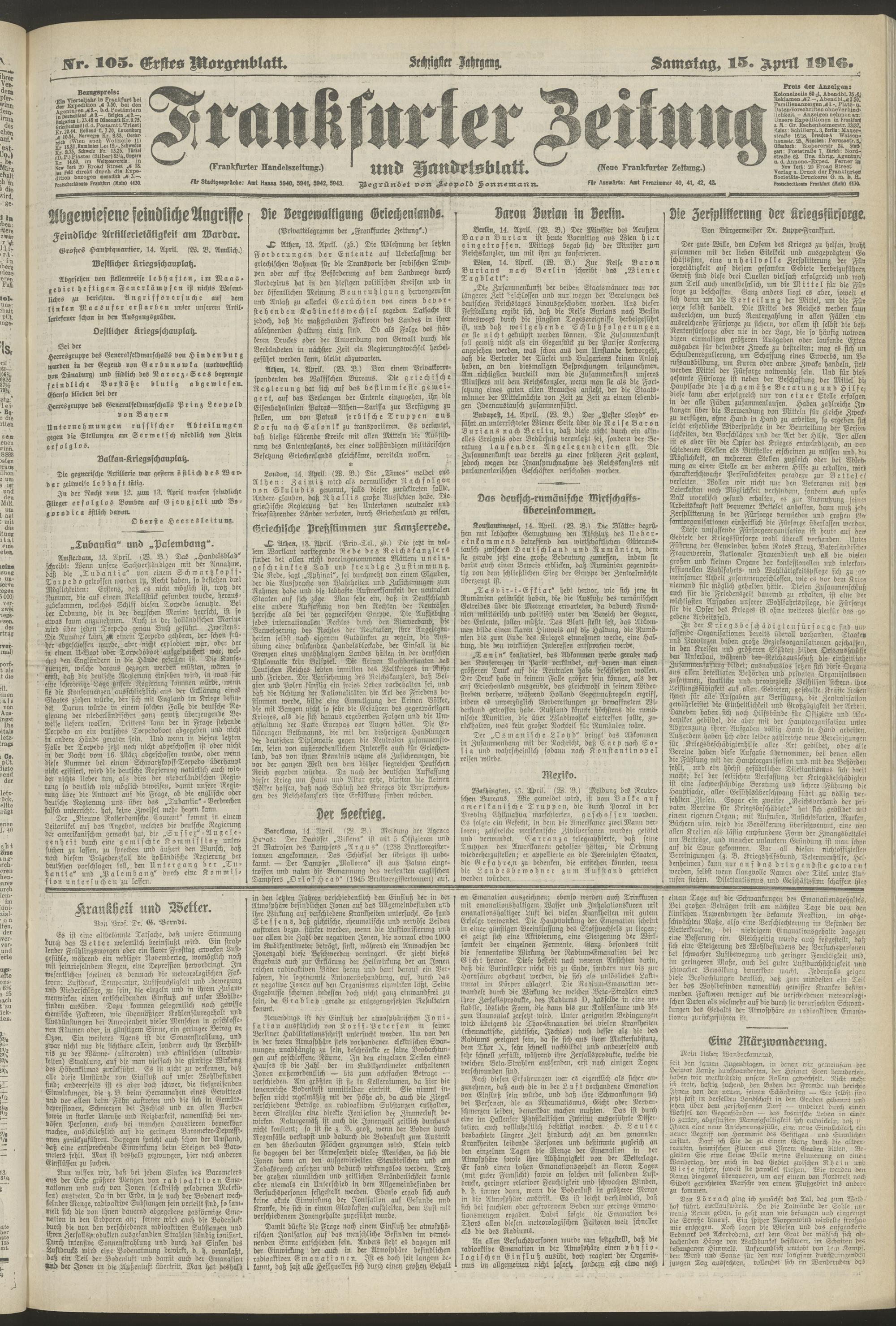 15.04.1916 = Nr. 105. Erstes Morgenblatt