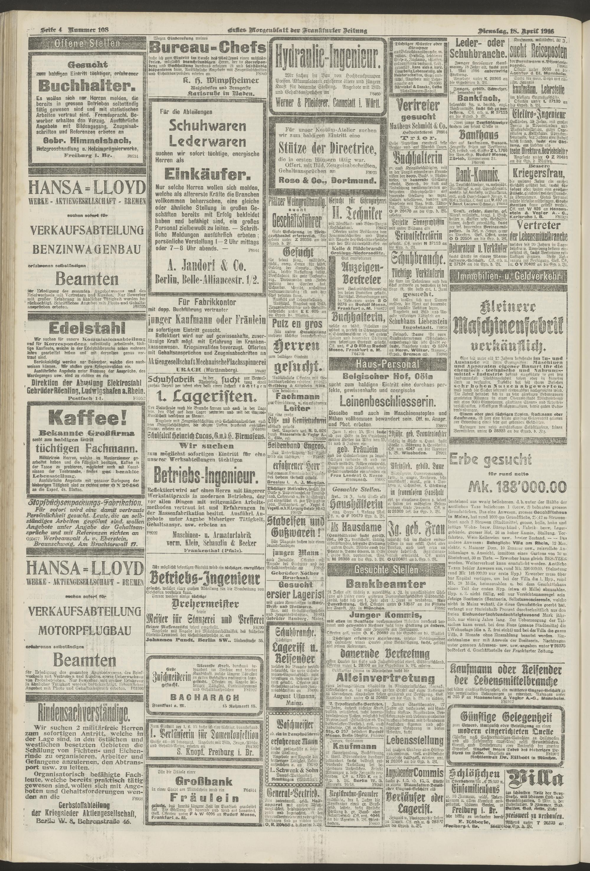 18.04.1916 = Nr. 108. Erstes Morgenblatt