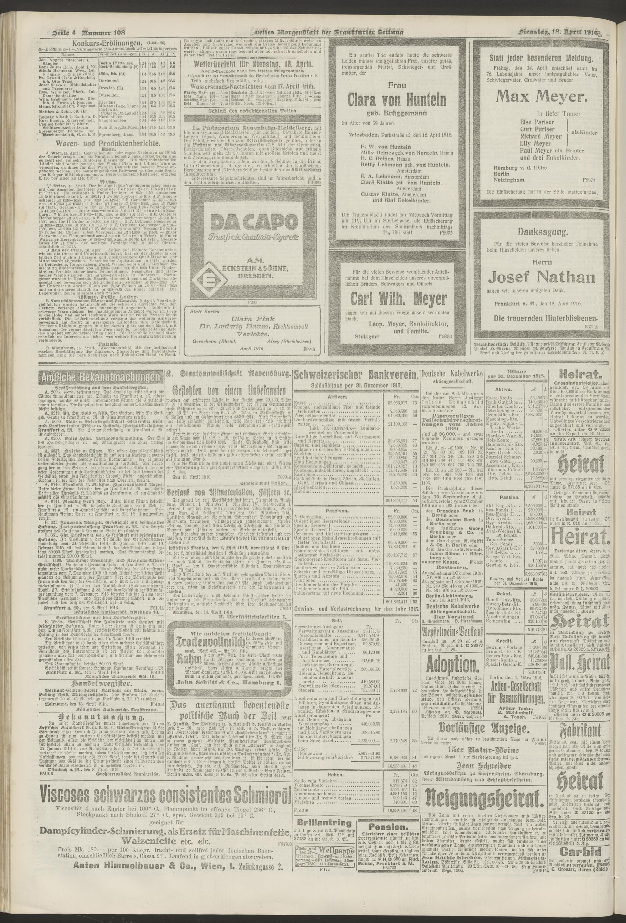 18.04.1916 = Nr. 108. Zweites Morgenblatt