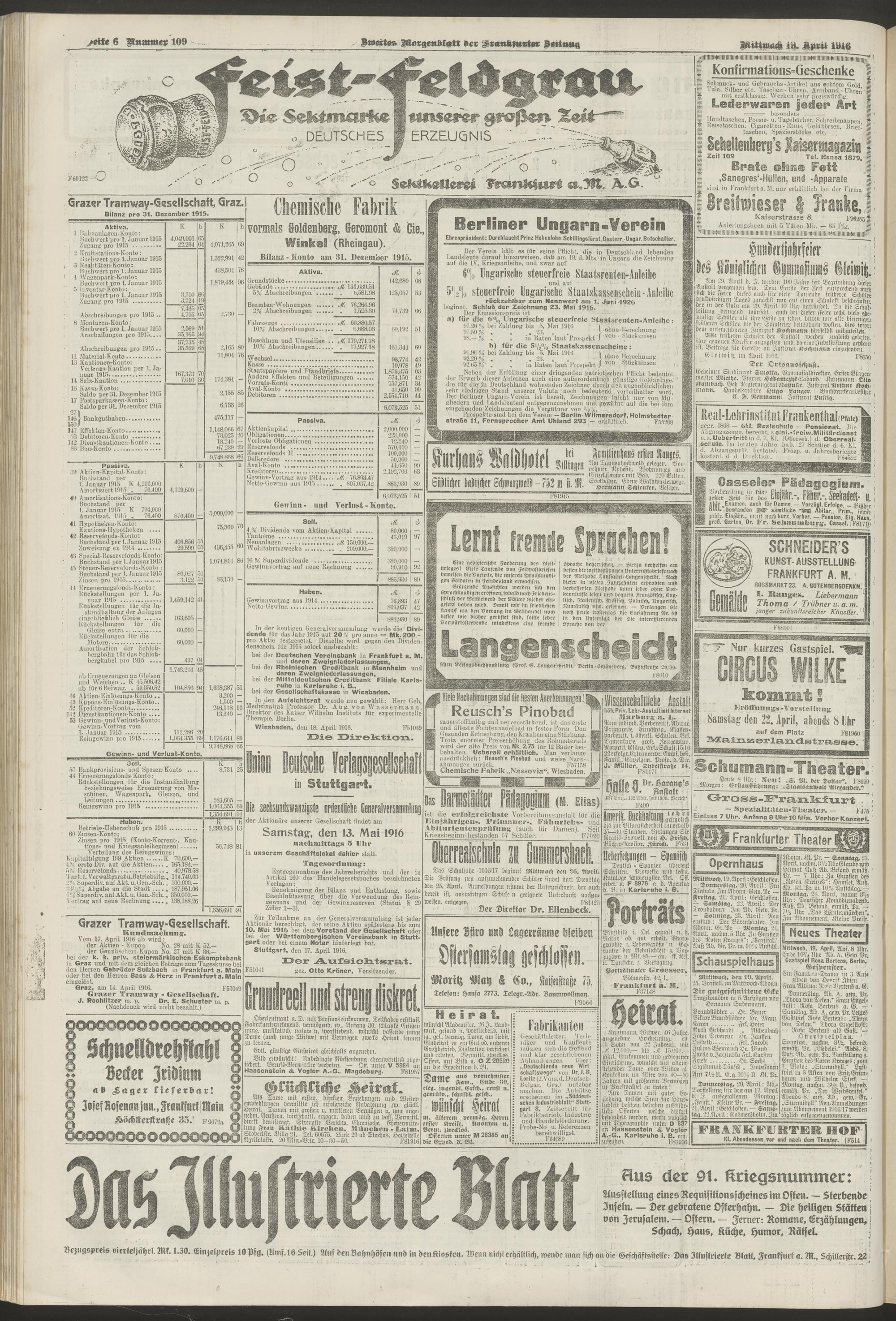 19.04.1916 = Nr. 109. Zweites Morgenblatt