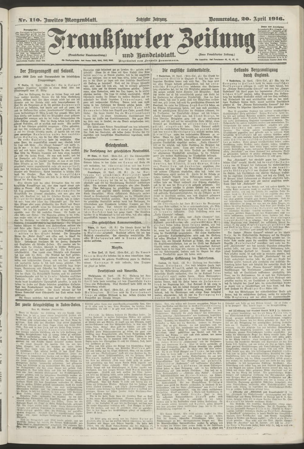 20.04.1916 = Nr. 110. Zweites Morgenblatt