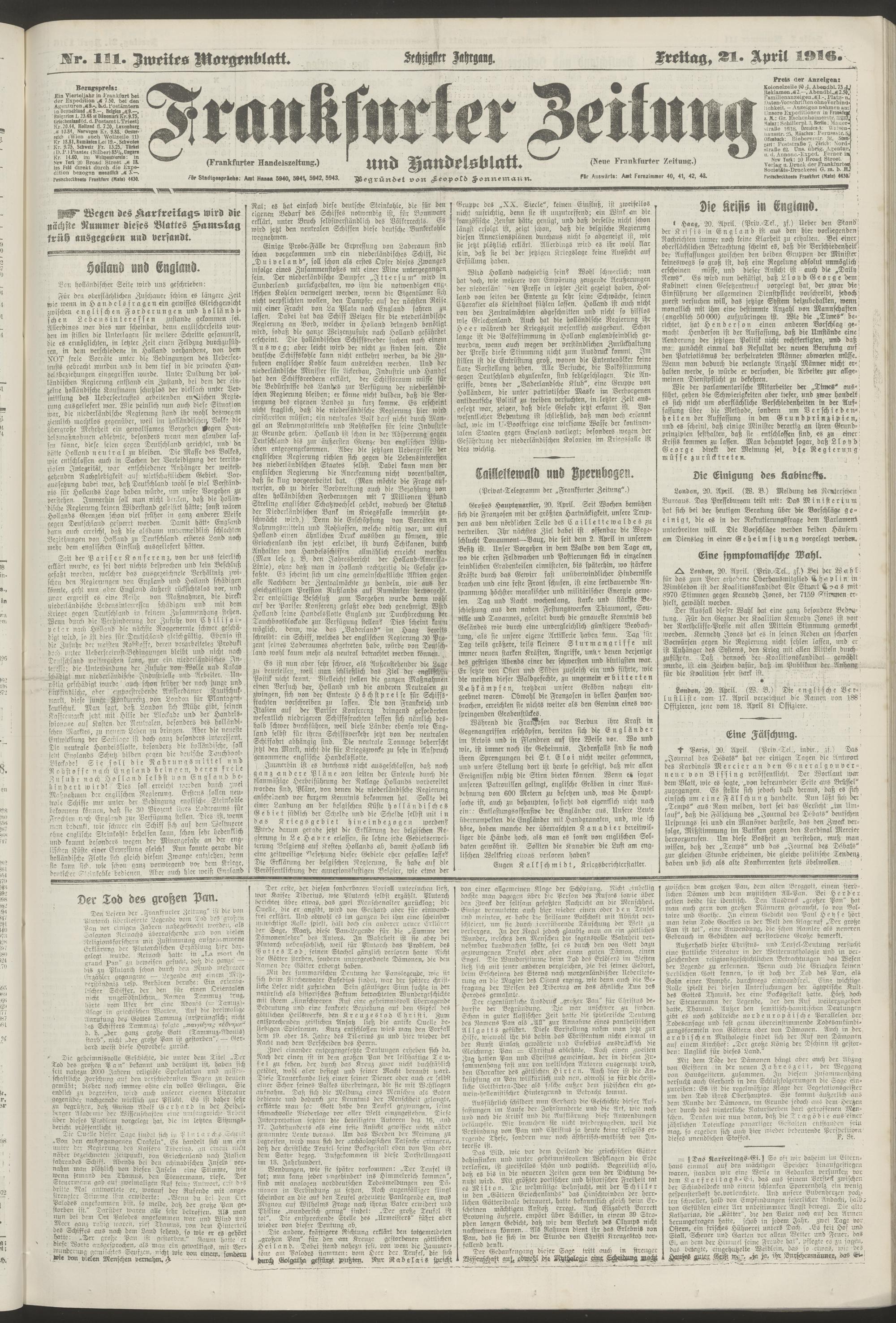 21.04.1916 = Nr. 111. Zweites Morgenblatt