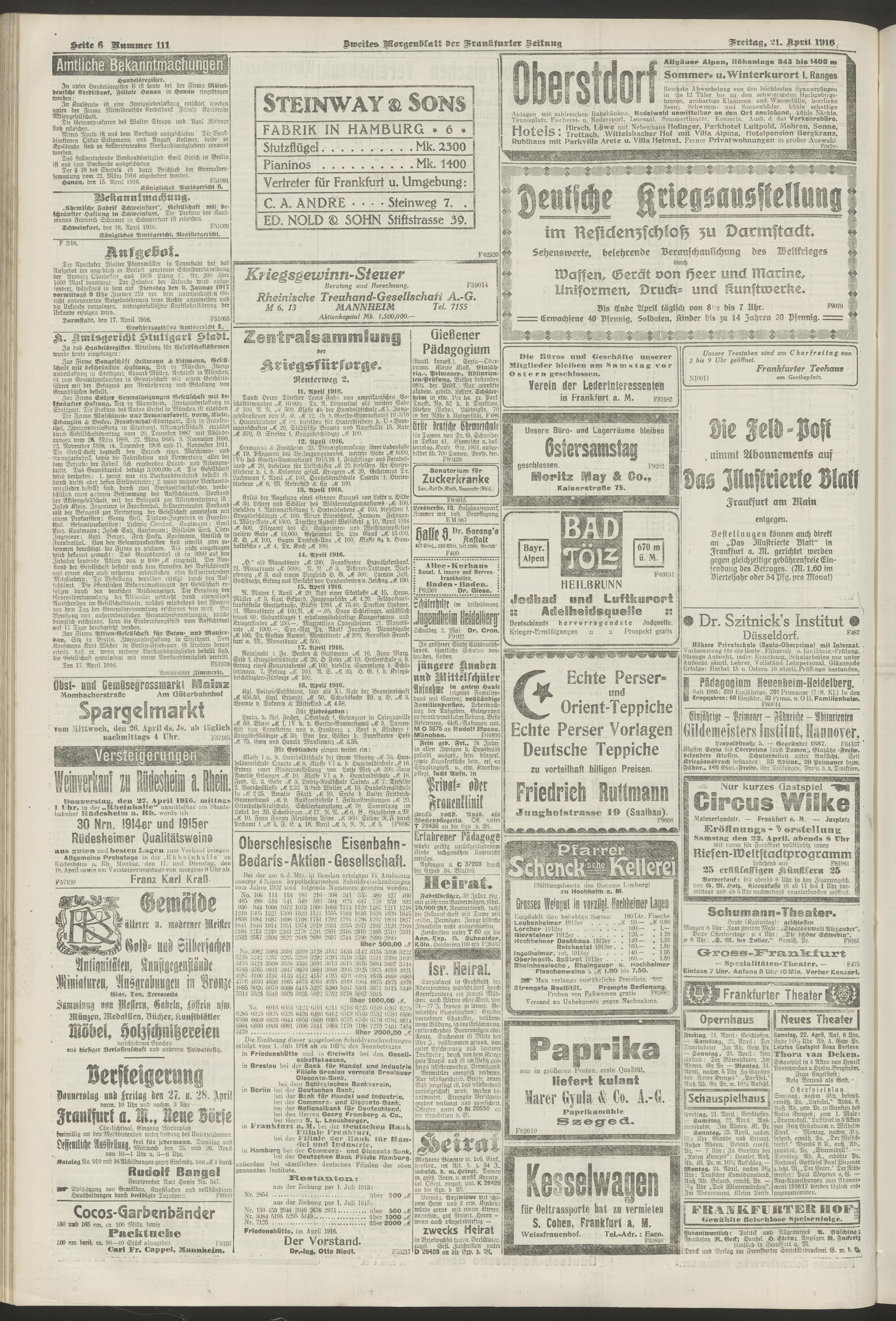 21.04.1916 = Nr. 111. Zweites Morgenblatt