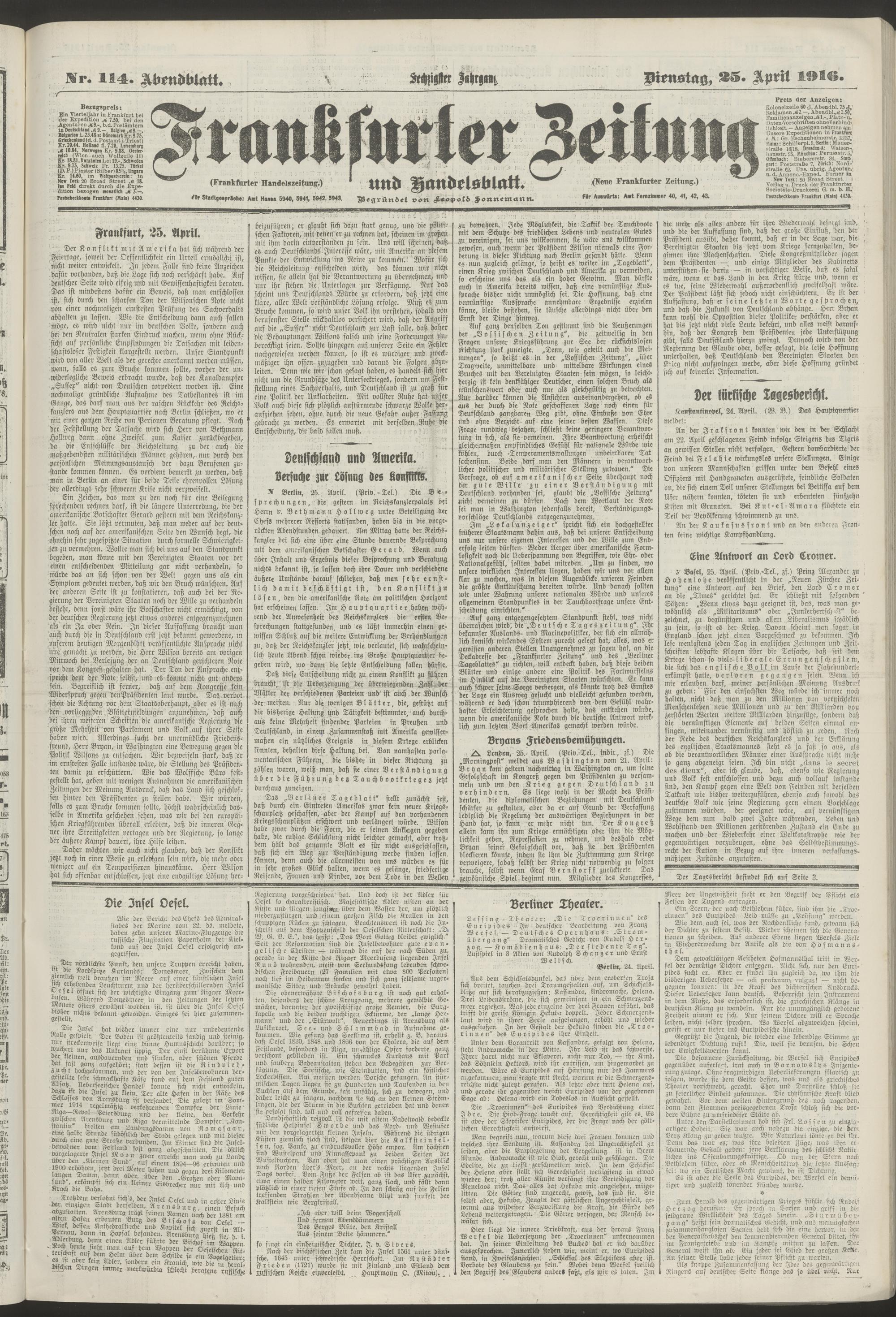 25.04.1916 = Nr. 114. Abendblatt
